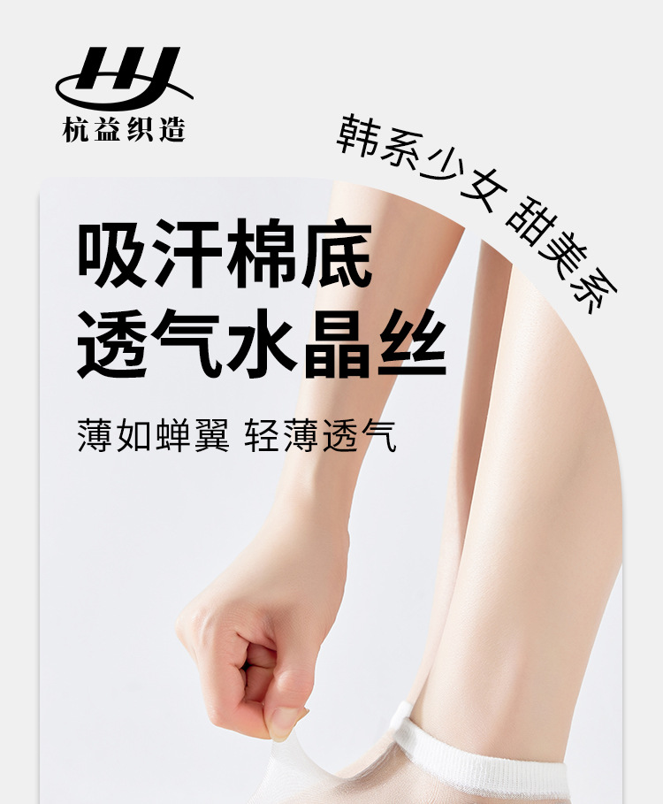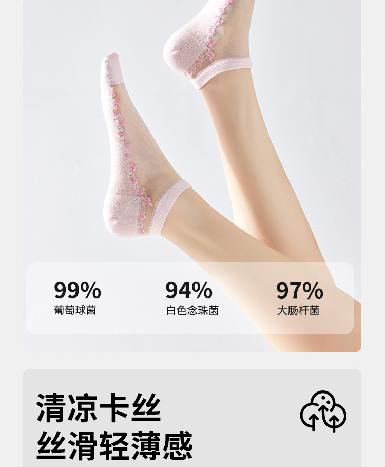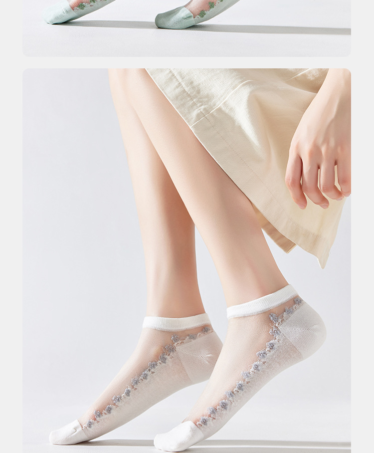 양말 여성용 봄과 여름 스틸 와이어 얇은 투명 순수 코튼 하단 얕은 유리 아이스 실크 스타킹 크리스탈 레이스 짧은 양말