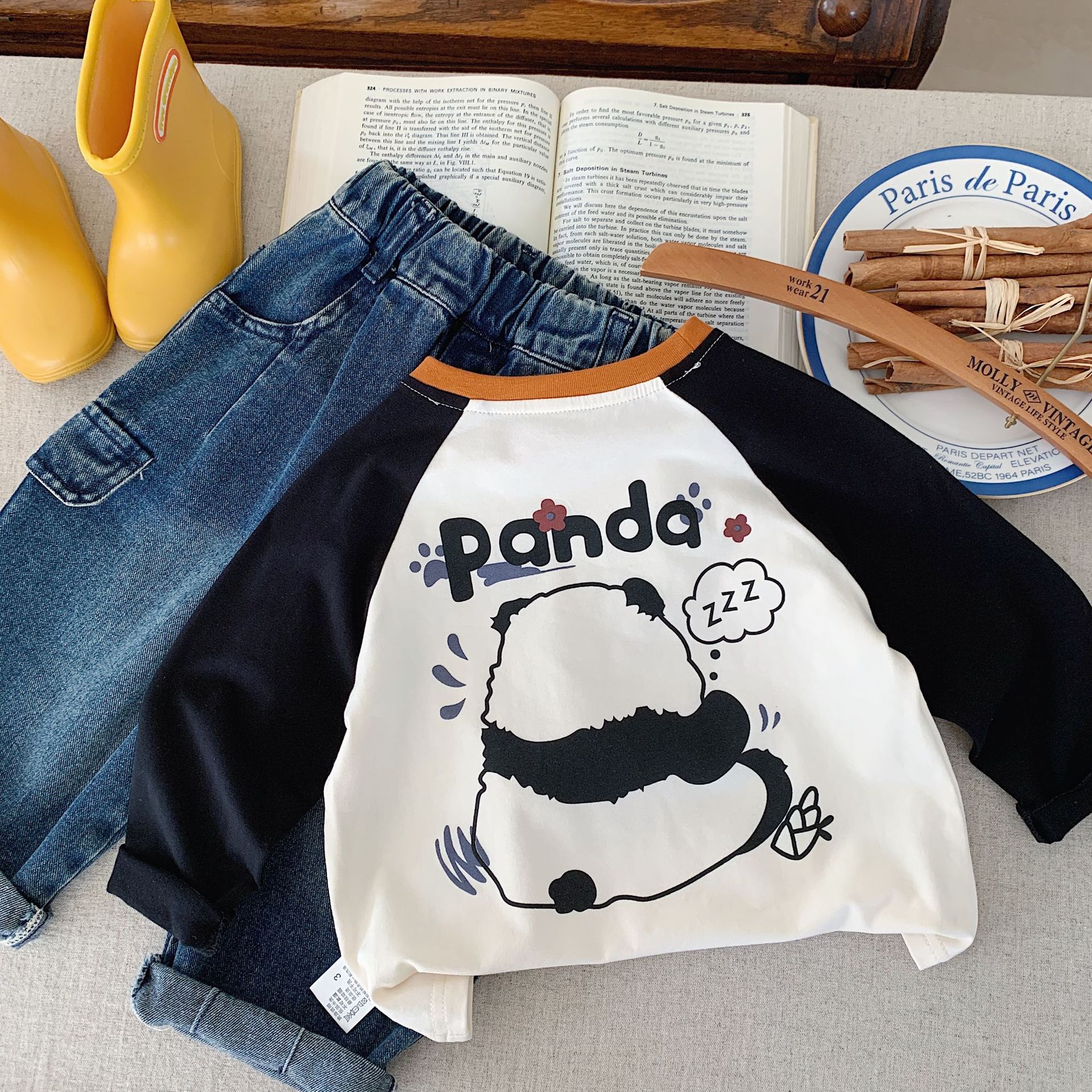 어린이 티셔츠 Bangcheng 2026 봄 귀여운 팬더 래글런 슬리브 신상 아동복 레터링 캐주얼 긴팔 트렌디 G0313