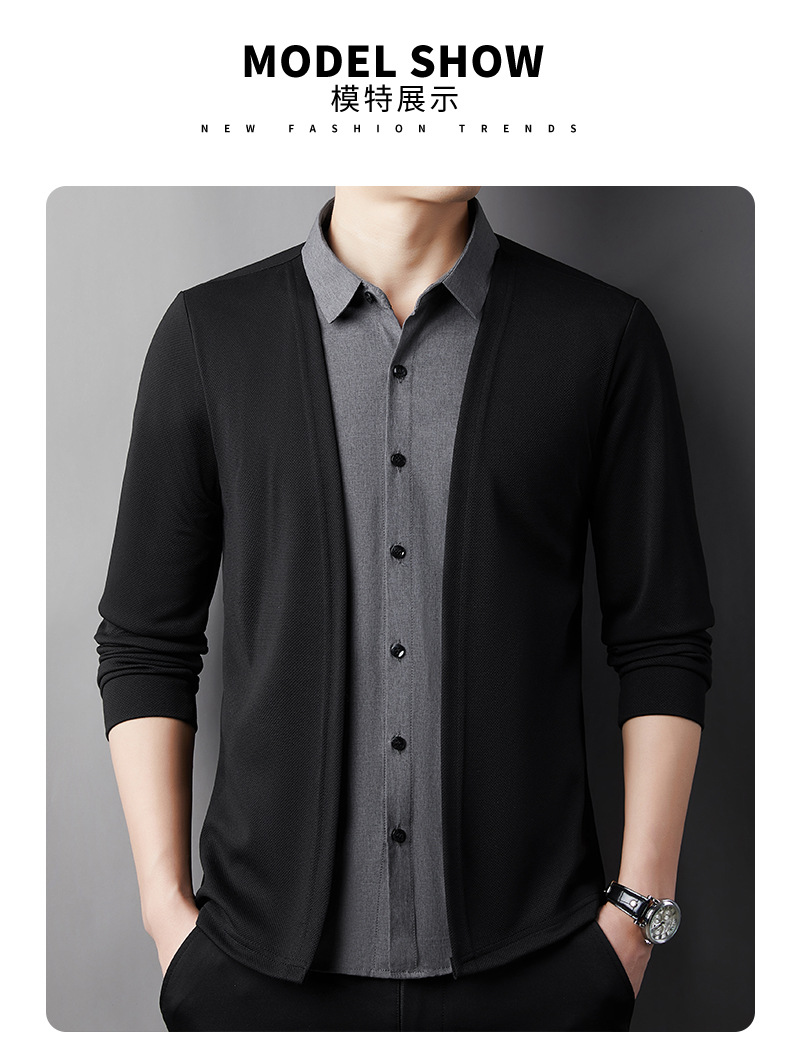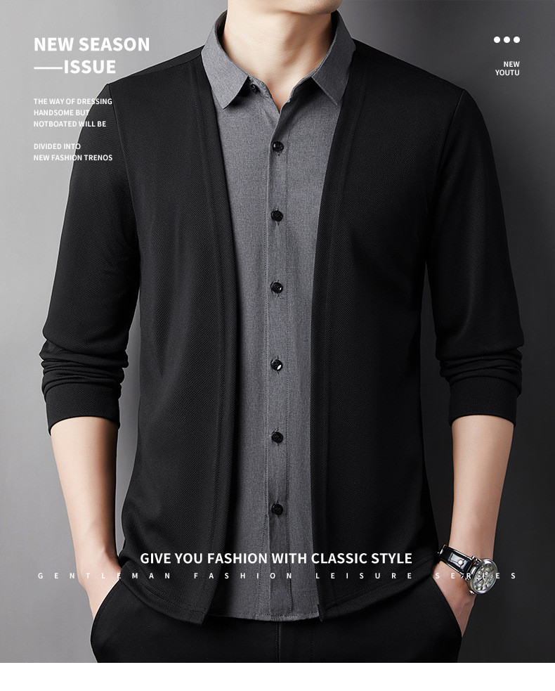 남성용 카디건 가짜 2 종 봄과 가을 비 다림질 긴팔 탑베이스 셔츠 셔츠 스킨 친화적 인 패션 올 매치 세트스토어 가기