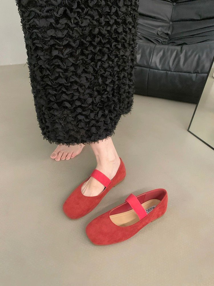 플랫 레트로 작은 빨간 싱글 신발 요정 신발 2024 스커트 메리 제인 신발을 가진 새로운 여름 발레 신발스토어 가기