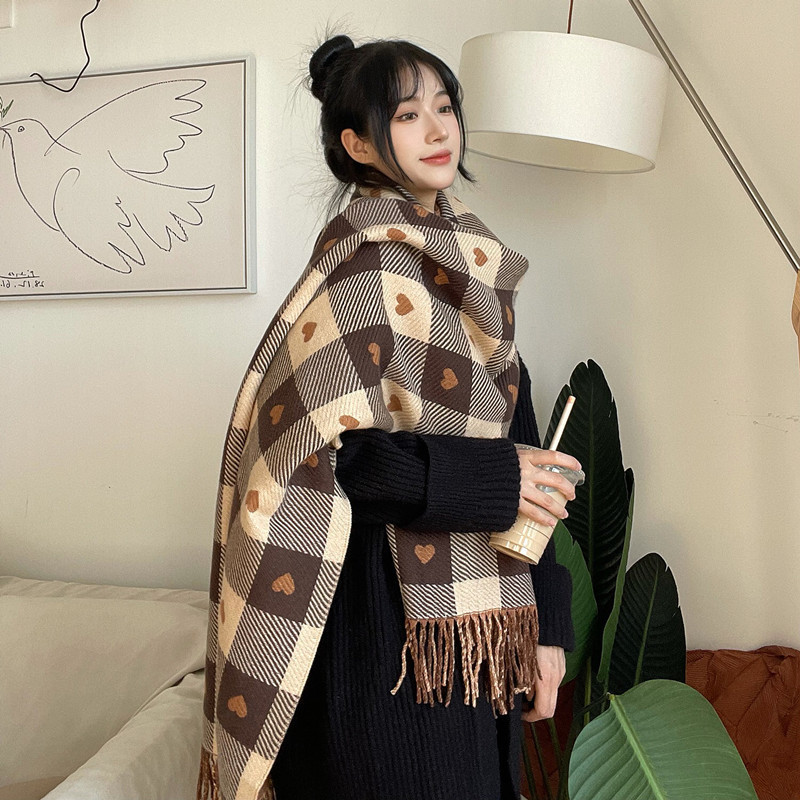 양면사랑 라텍스 레드 캐시미어 스카프 여자 겨울 올매치 한국식 대형 목도리 따뜻한 두꺼운 스카프스토어 가기
