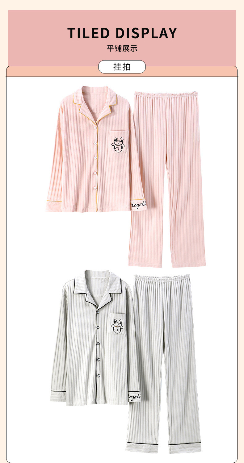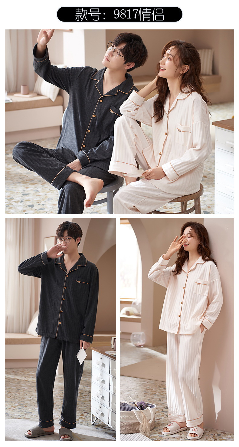 봄과 가을 커플 잠옷 면 긴 소매 옷 남자와 여자의 옷깃 캐주얼 여성의 가을 겨울 홈 의류 인쇄하지 않고스토어 가기