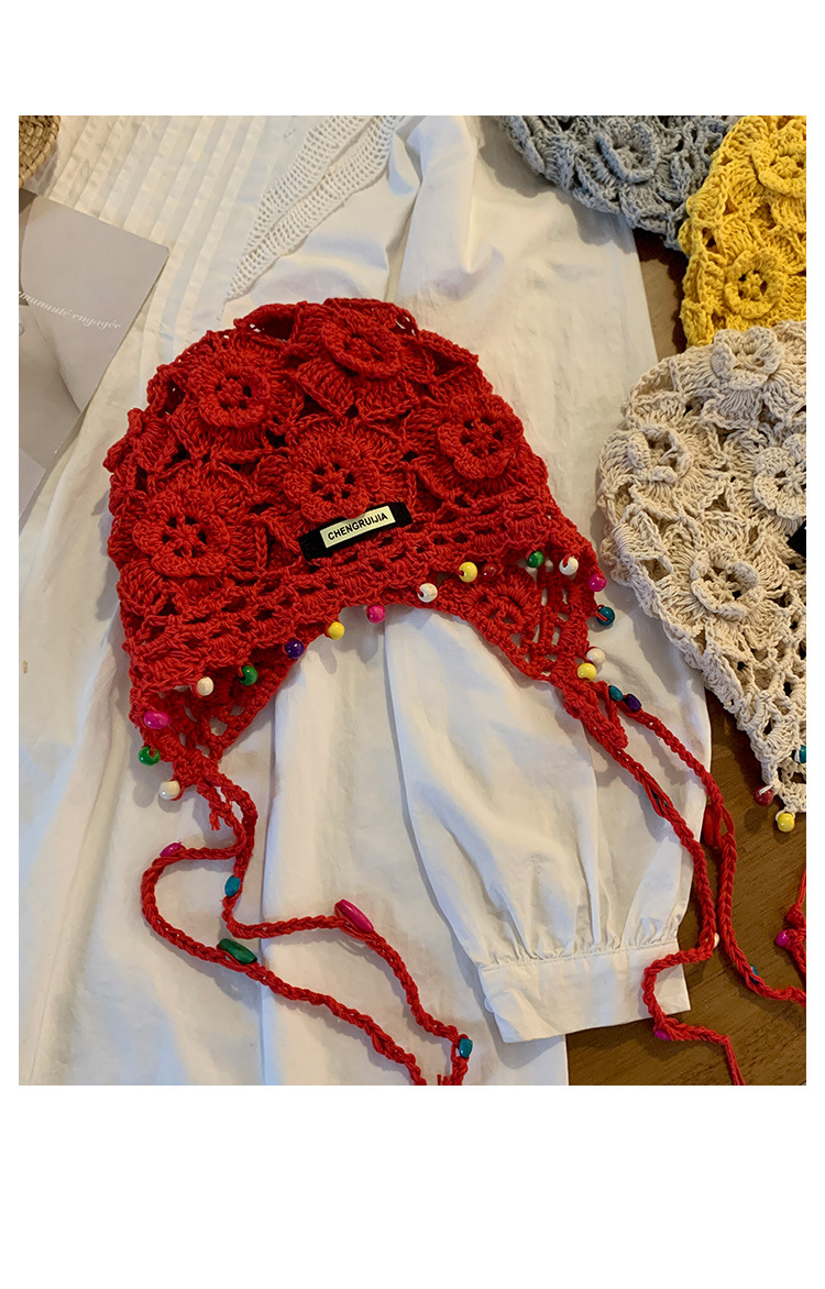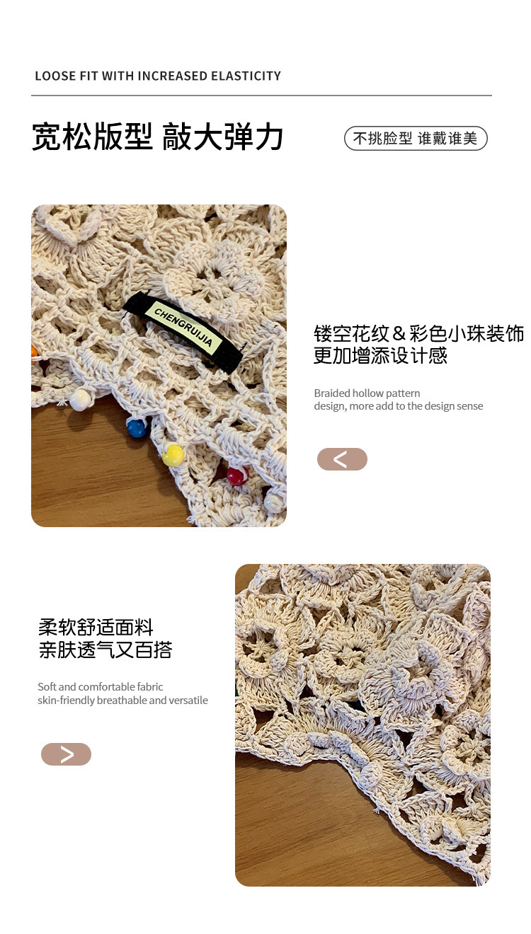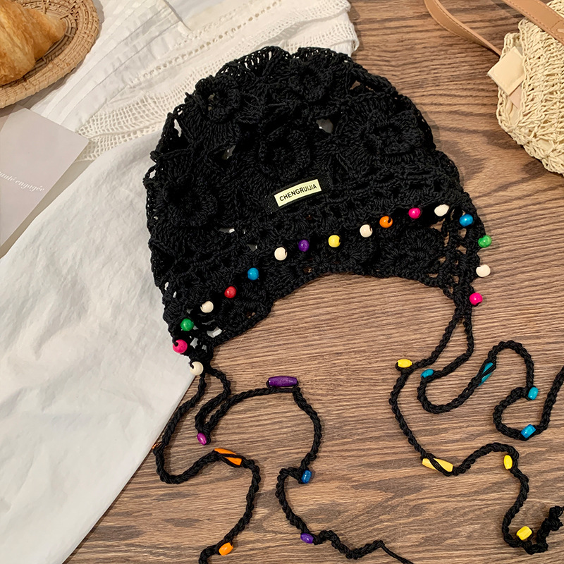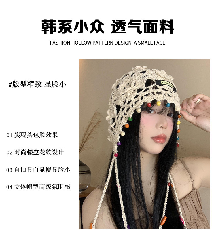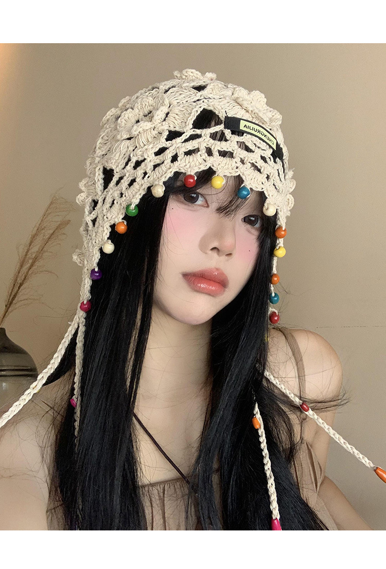 빈티지 할로우 보헤미안 꽃 술 짠 가방 머리 모자 여성 민족 스타일 풀오버 모자 수제 니트 모자