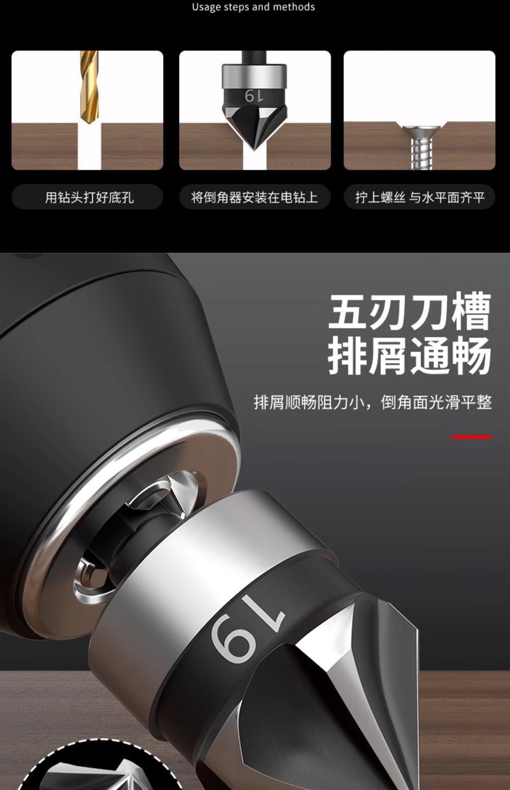 5 블레이드 모따기 도구 모따기 도구 단일 블레이드 90 도 리머 테이퍼 스크류 카운터 싱크 도구 목공 디버링 카운터 싱크스토어 가기
