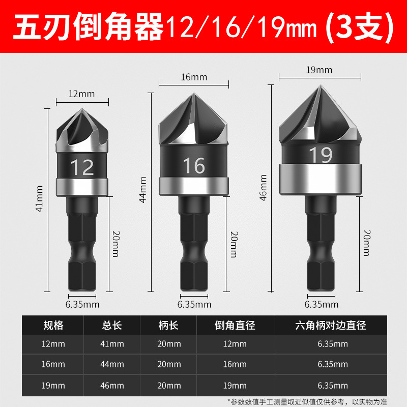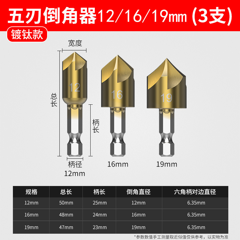 • 티타늄 도금 5날 모따기 12/16/19mm(3개)