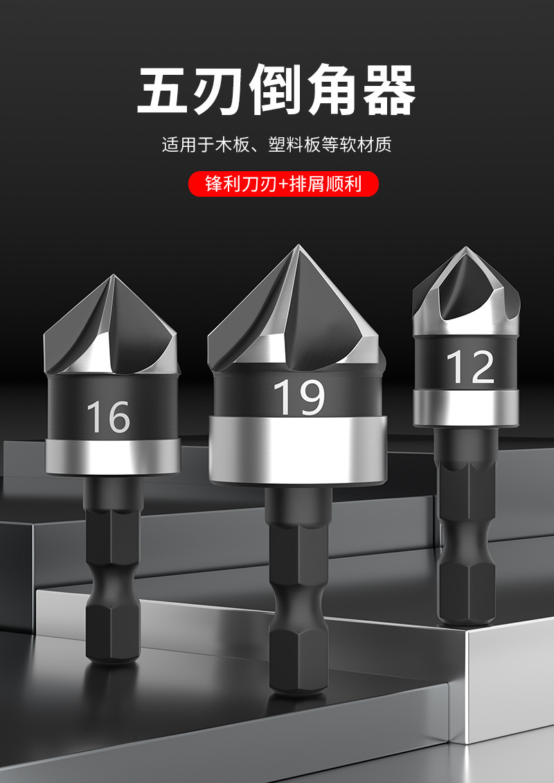 5 블레이드 모따기 도구 모따기 도구 단일 블레이드 90 도 리머 테이퍼 스크류 카운터 싱크 도구 목공 디버링 카운터 싱크