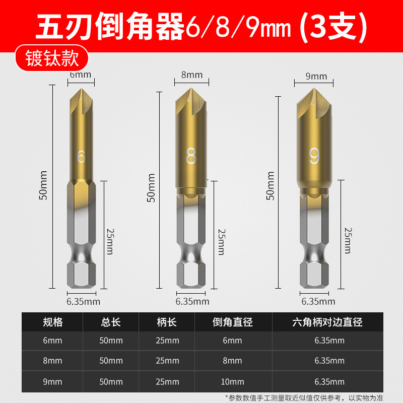 • 티타늄 도금 5날 모따기 6/8/9mm(3개)