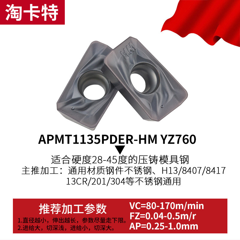 • APMT1135PDER-XM YZ760 HRC28-45도 다이캐스트 금형강