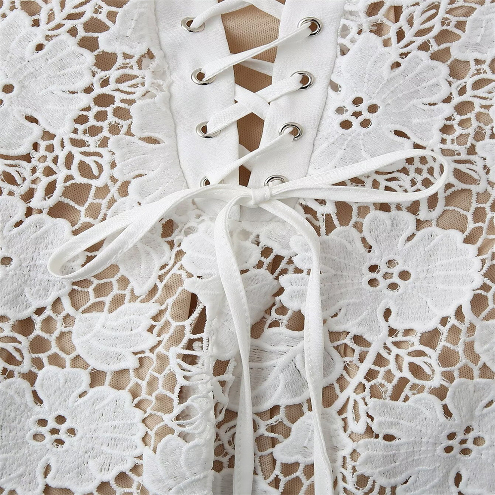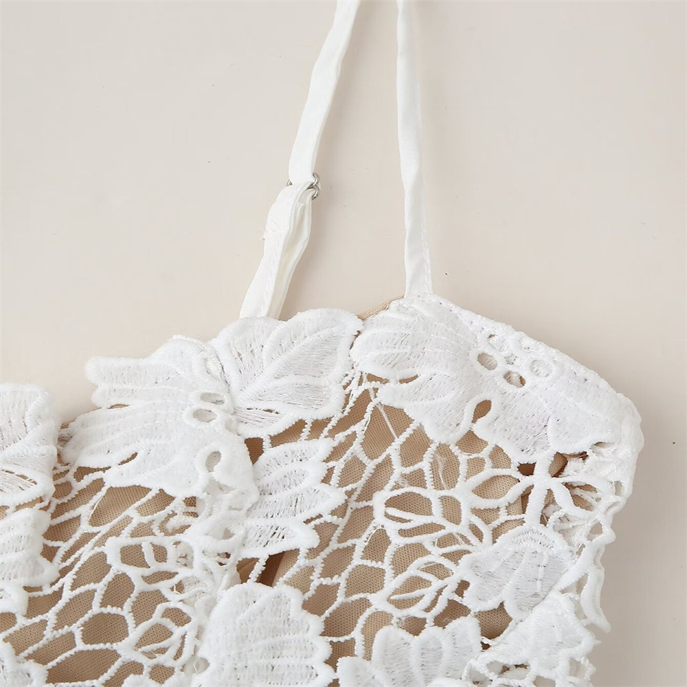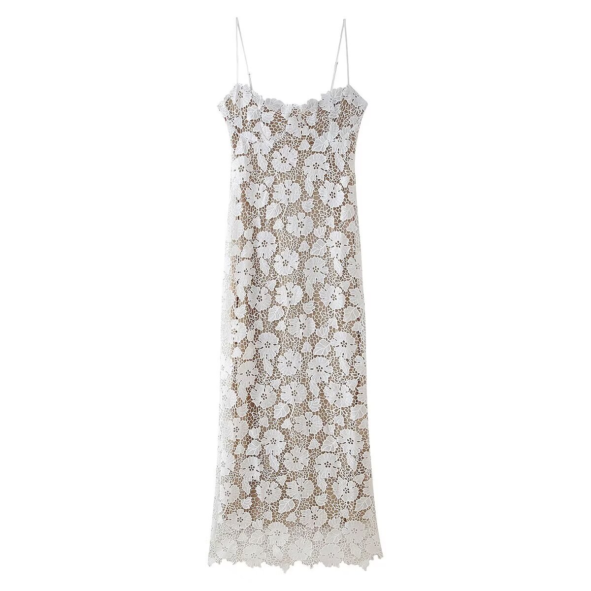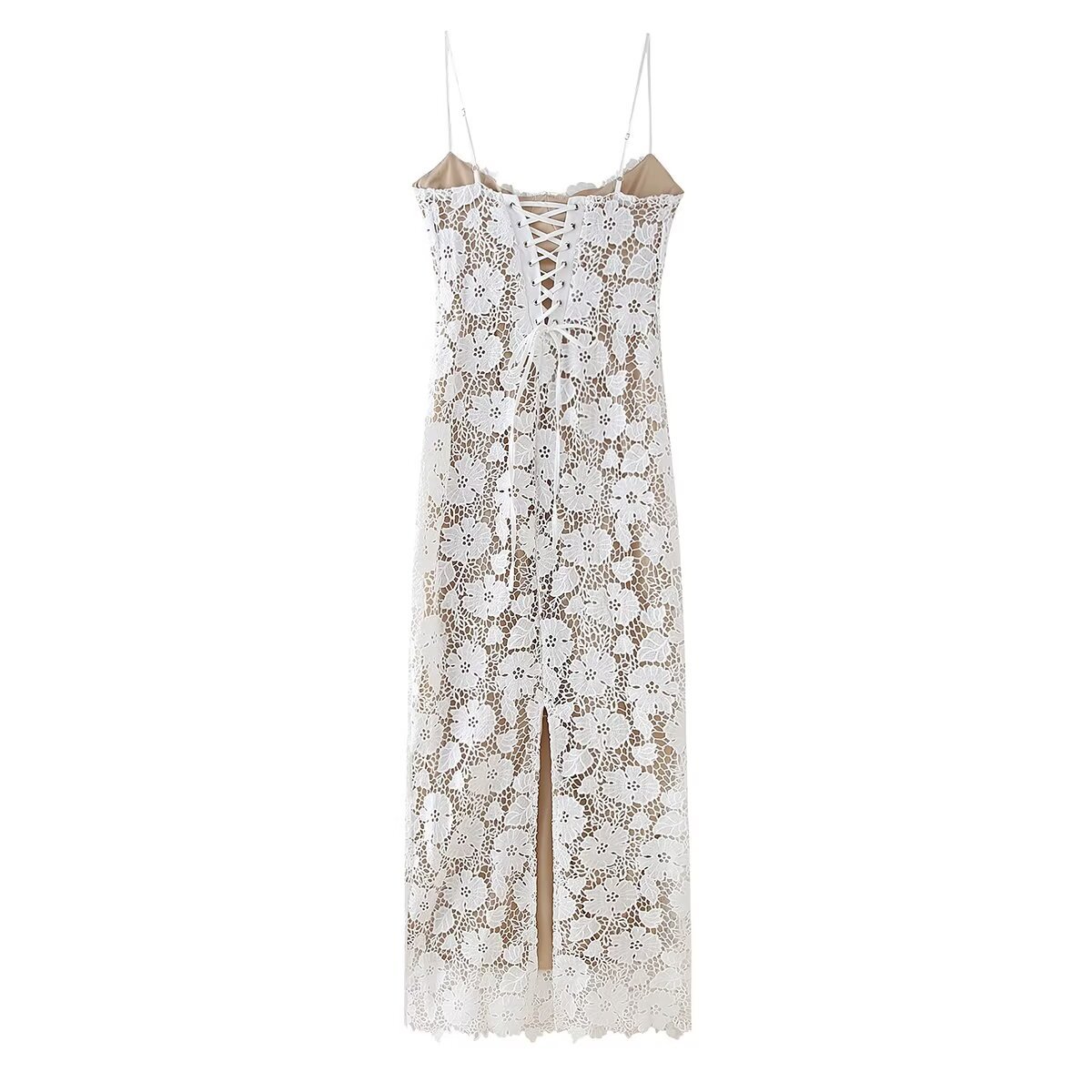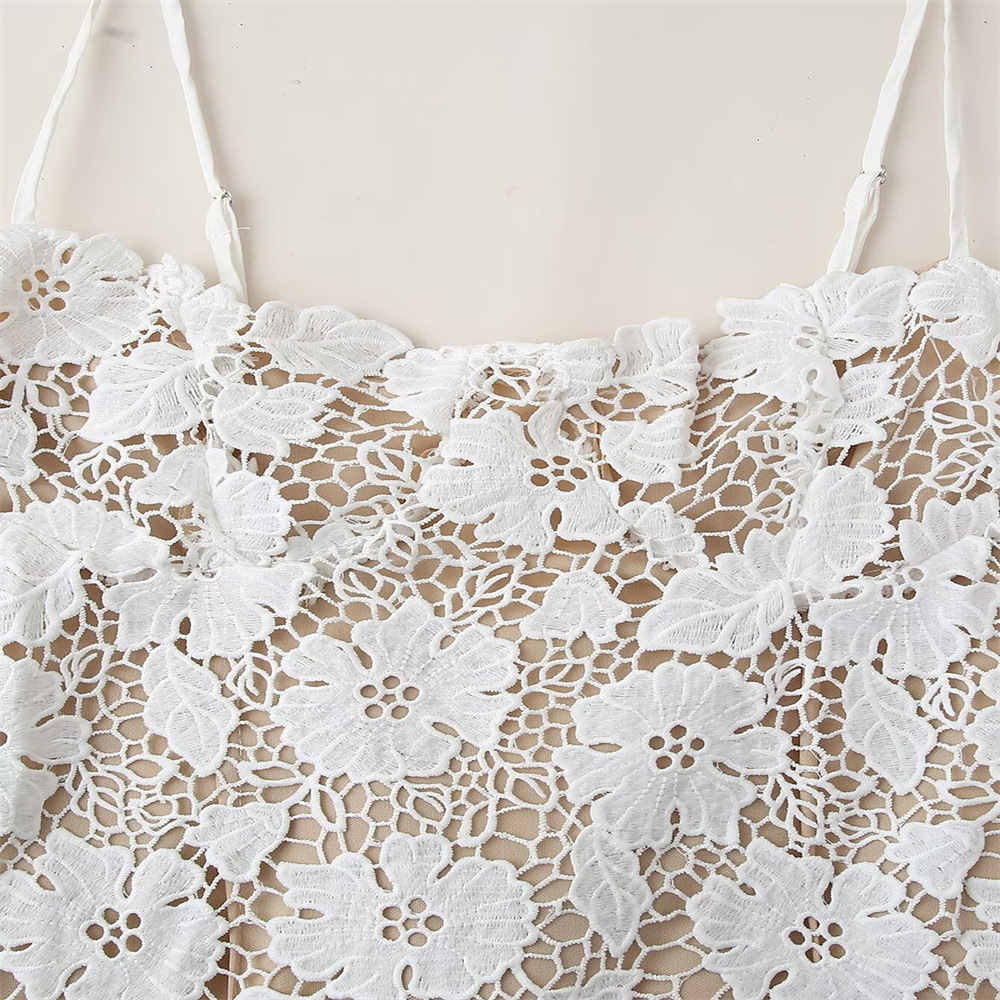 유럽과 미국 스타일 2024 여름 새로운 여성 민소매 슬림 분할 레이스 스트랩 디자인 슬링 원피스