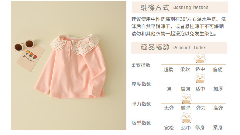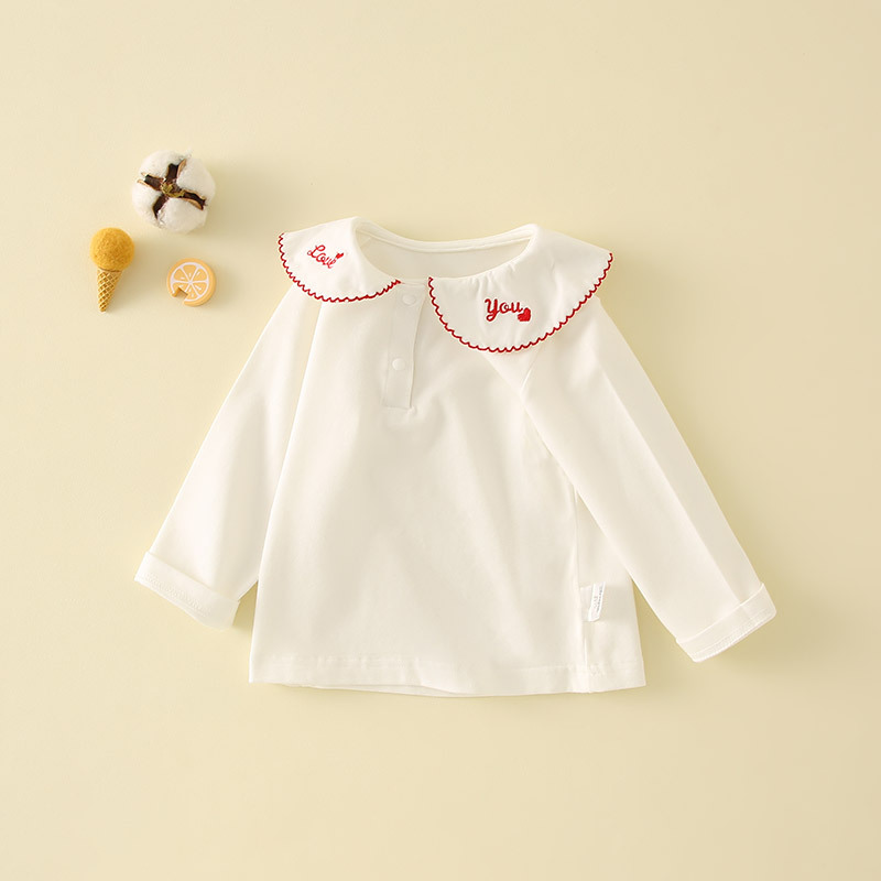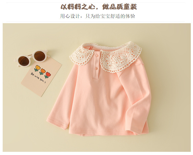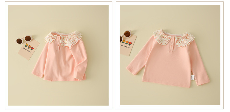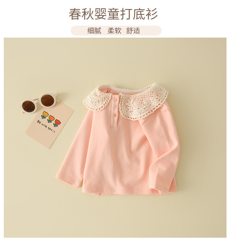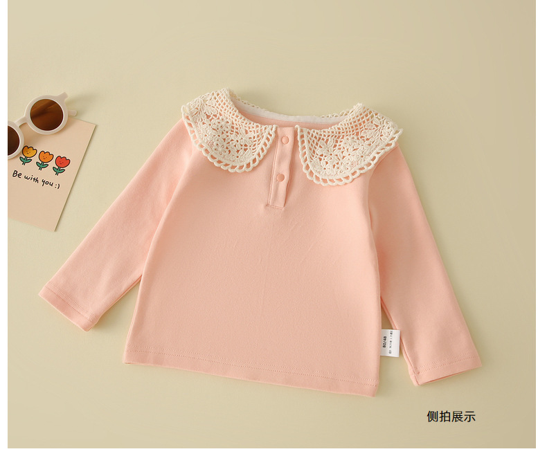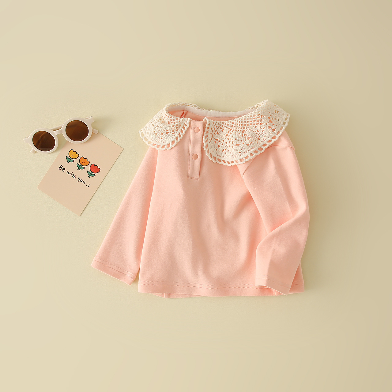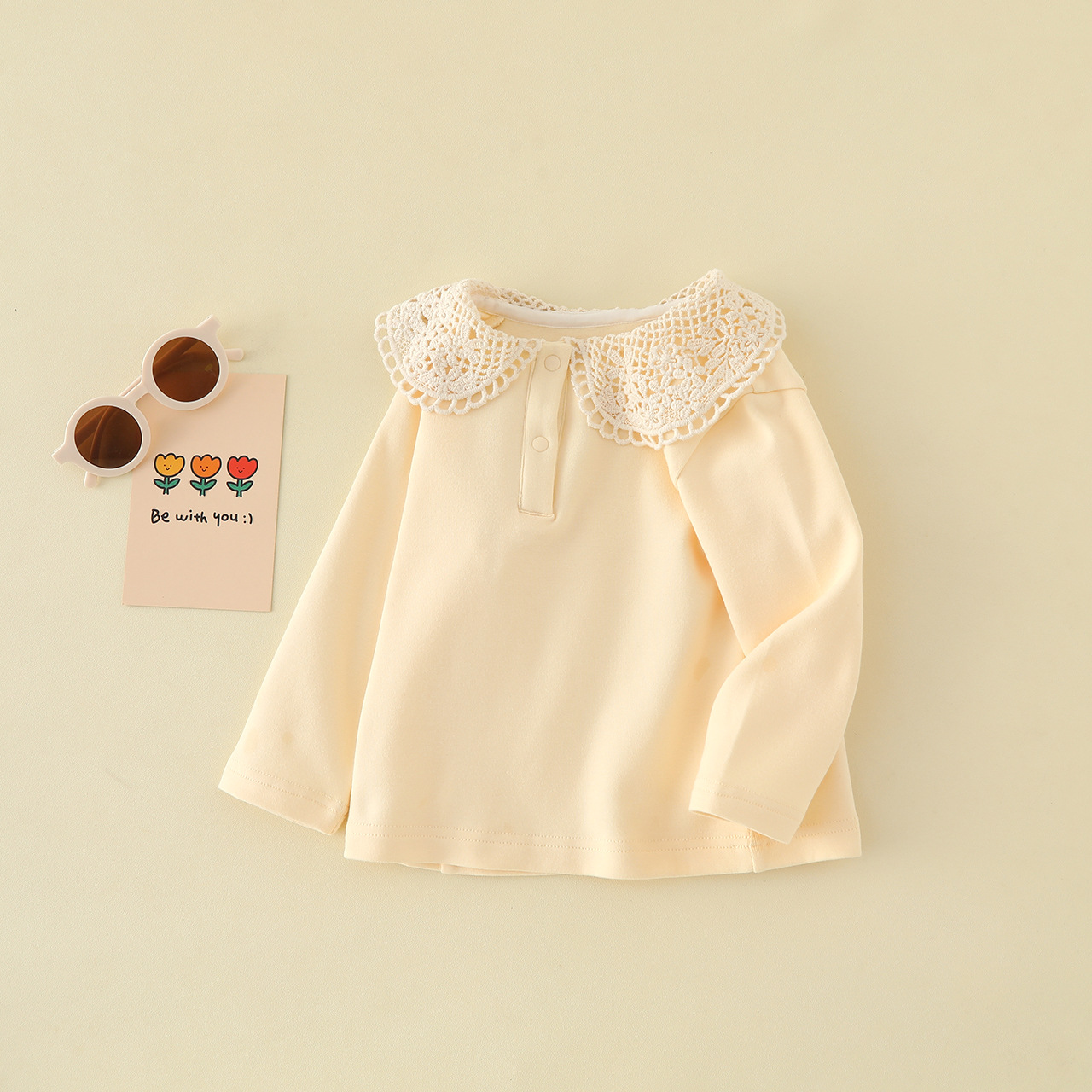 2025년 신상 스타일리쉬한 인형 칼라 탑, 한국 스타일 A급 면 소재, 긴팔 여아용 신축성 있는 이너웨어 및 아우터웨어스토어 가기