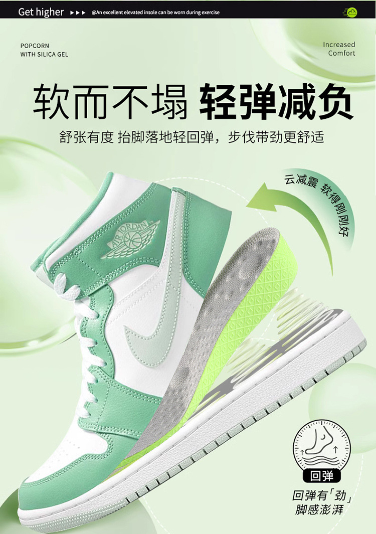 남녀공용 키높이 깔창, 발이 피곤하지 않음, 눈에 띄지 않음, 키높이 효과, 땀 흡수, 통기성, 스포츠용 충격흡수, 냄새방지, 항균