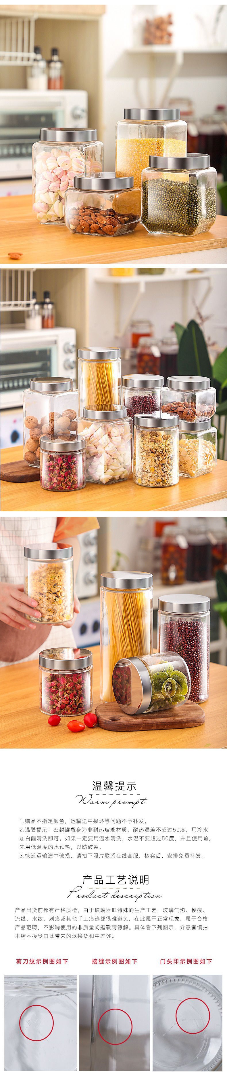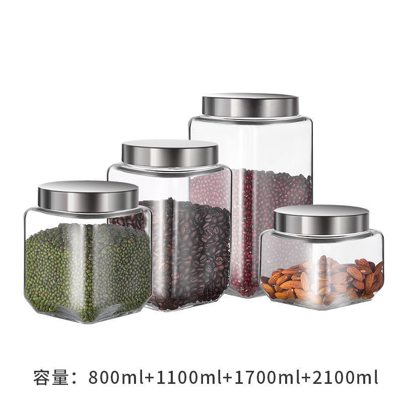 유리 저장 항아리 밀봉 항아리 뚜껑 광장 항아리 조미료 저장 병 투명한 큰 입 넓은 입 열스토어 가기