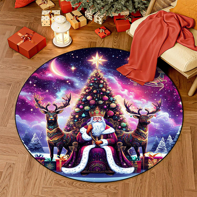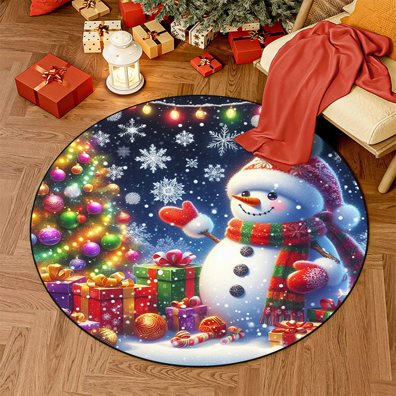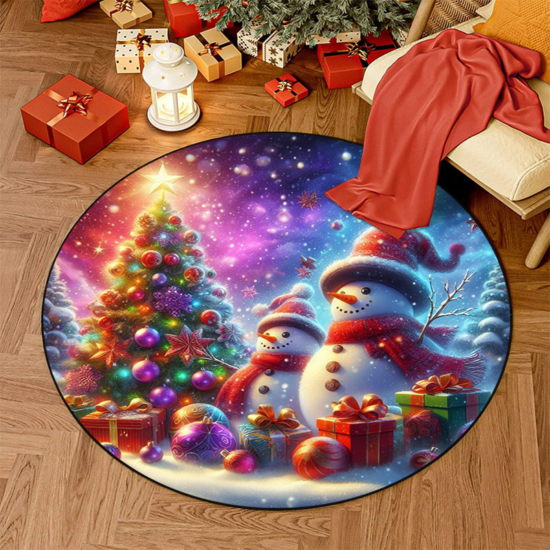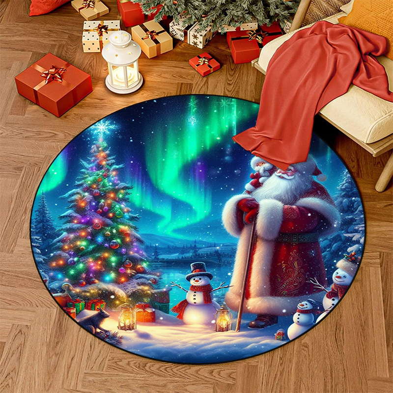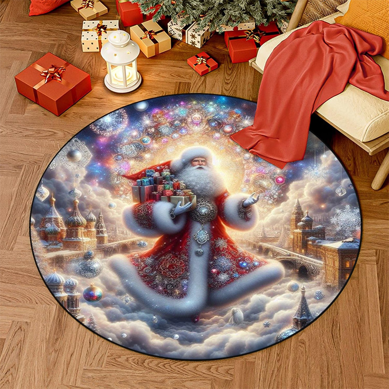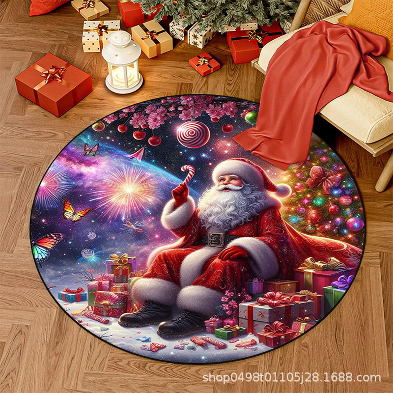 Daifa TEMU 크리스마스 홀리데이 홈 장식 라운드 카펫 3D 비주얼 그릴 카펫 침실 침실 담요