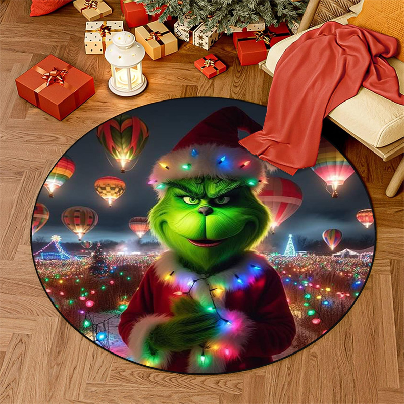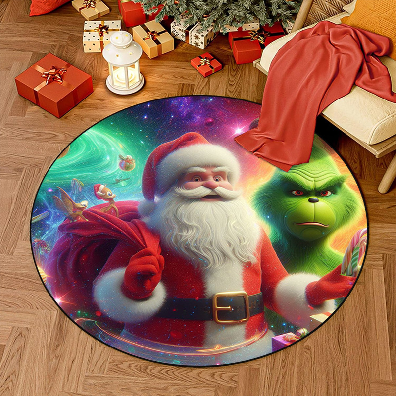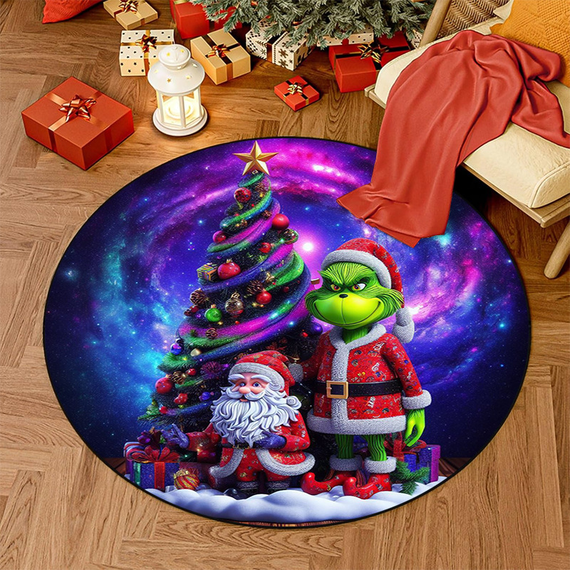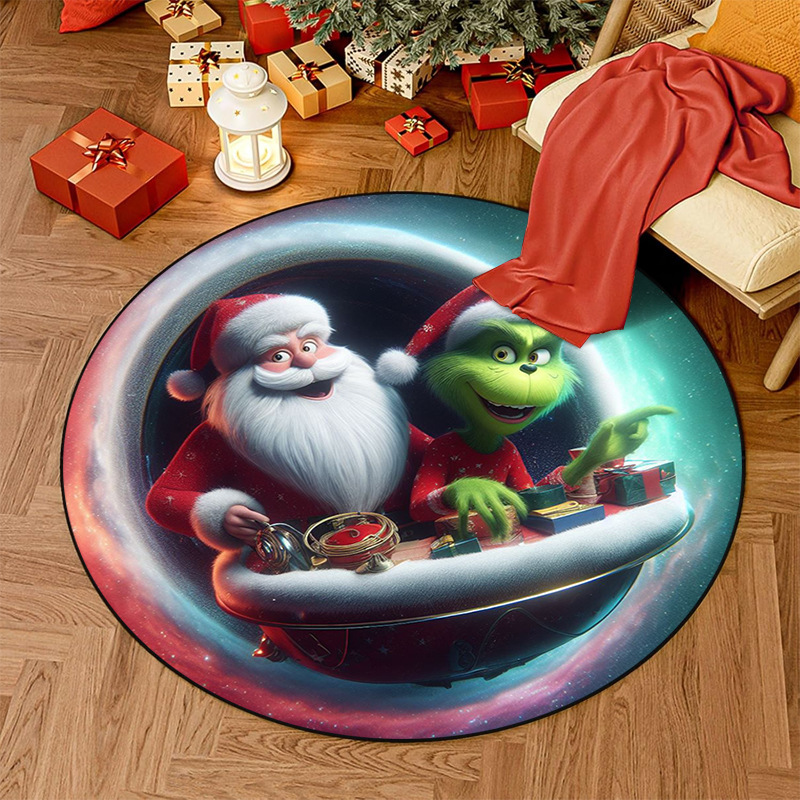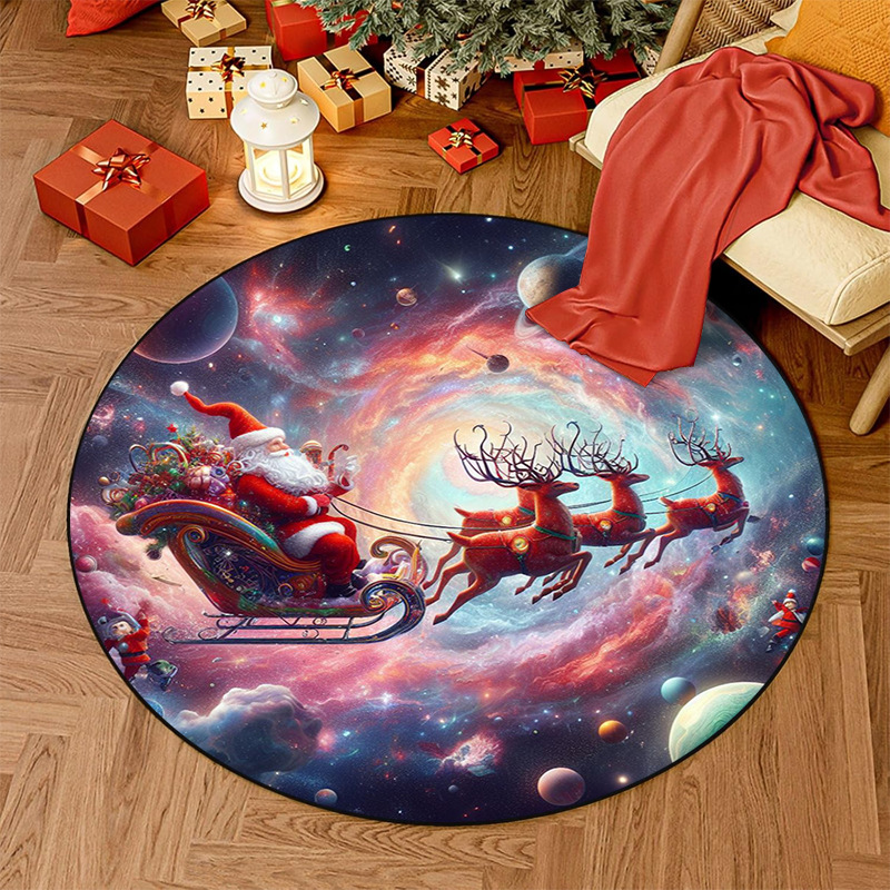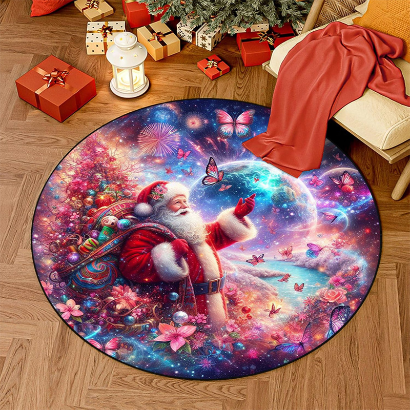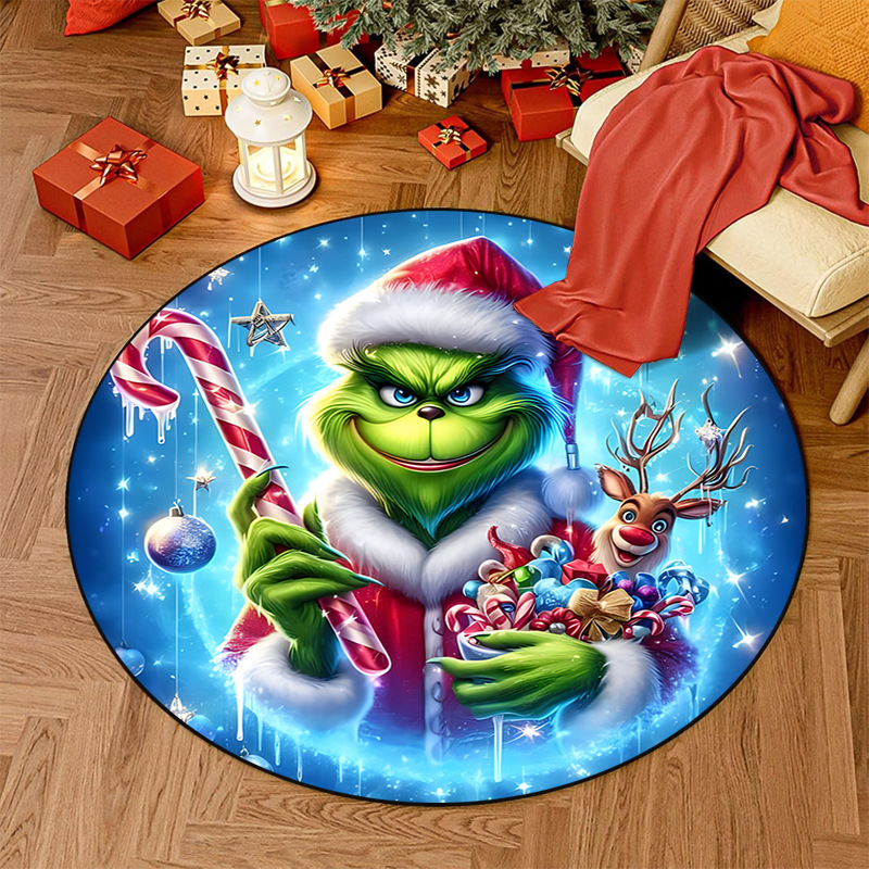 Daifa TEMU 크리스마스 홀리데이 홈 장식 라운드 카펫 3D 비주얼 그릴 카펫 침실 침실 담요