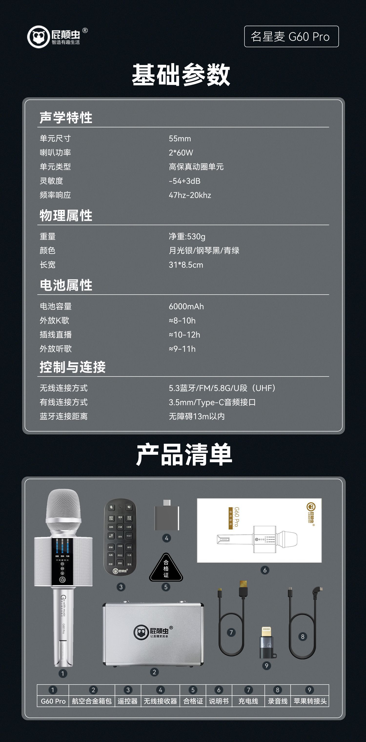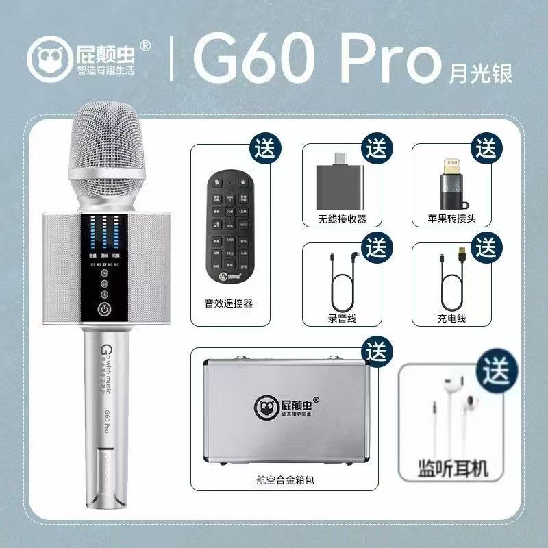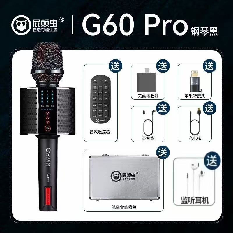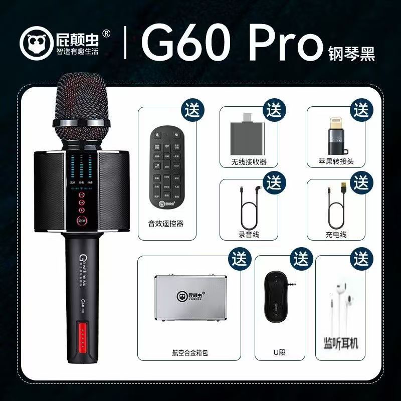 2024 새로운 방귀 버그 오디오 마이크 통합 마이크 사운드 카드 라이브 노래 무선 블루투스 G60Pro