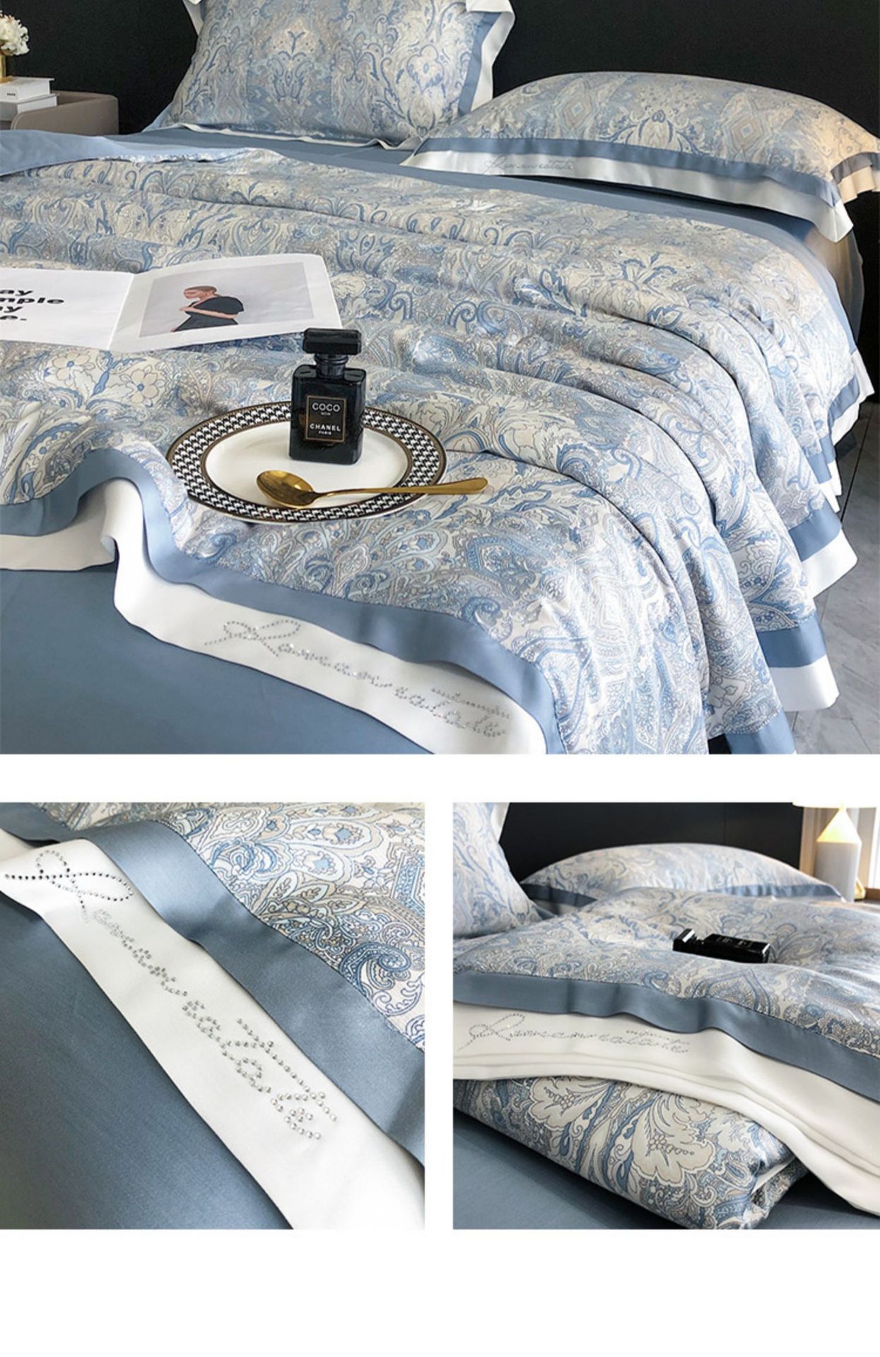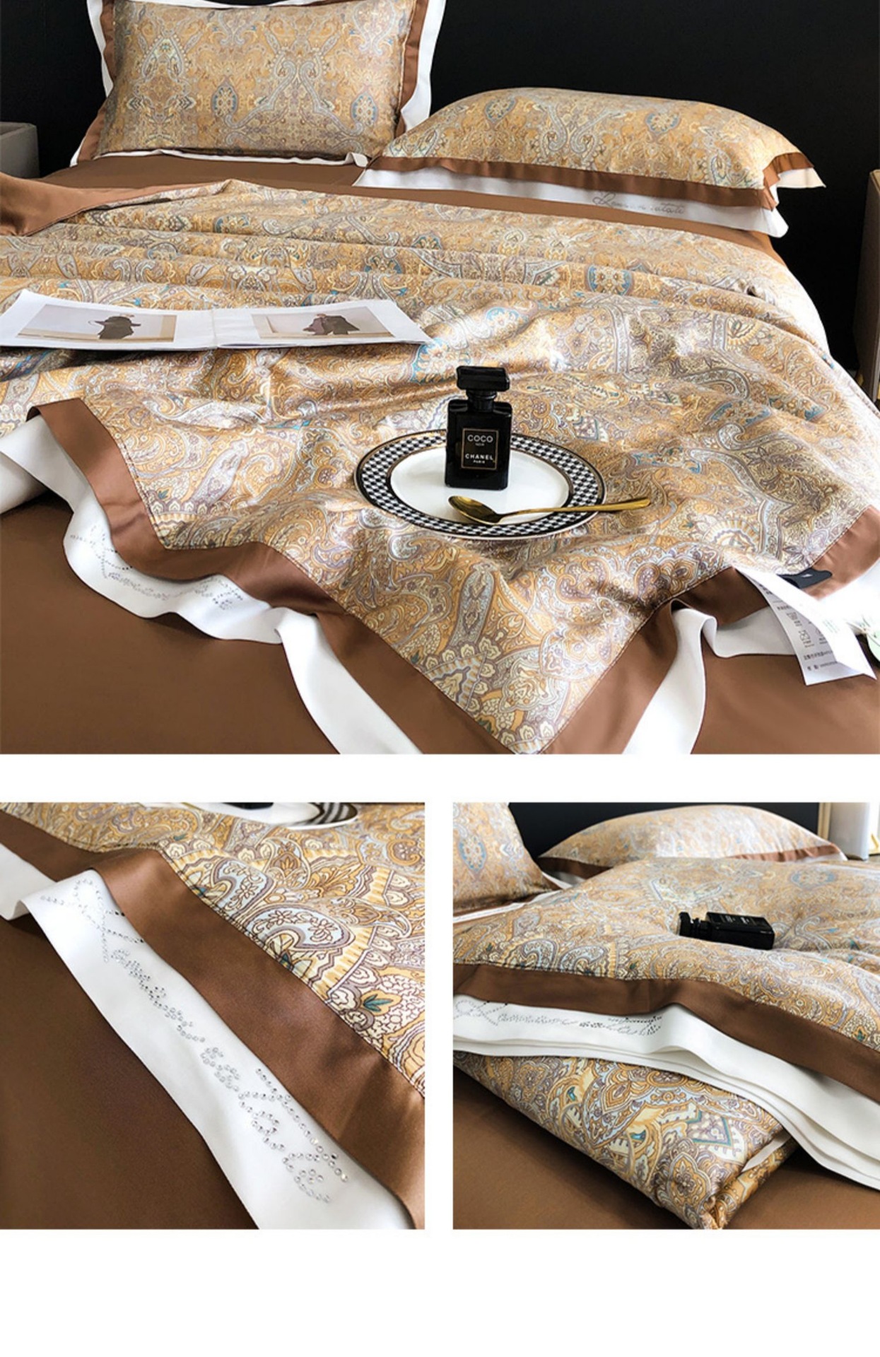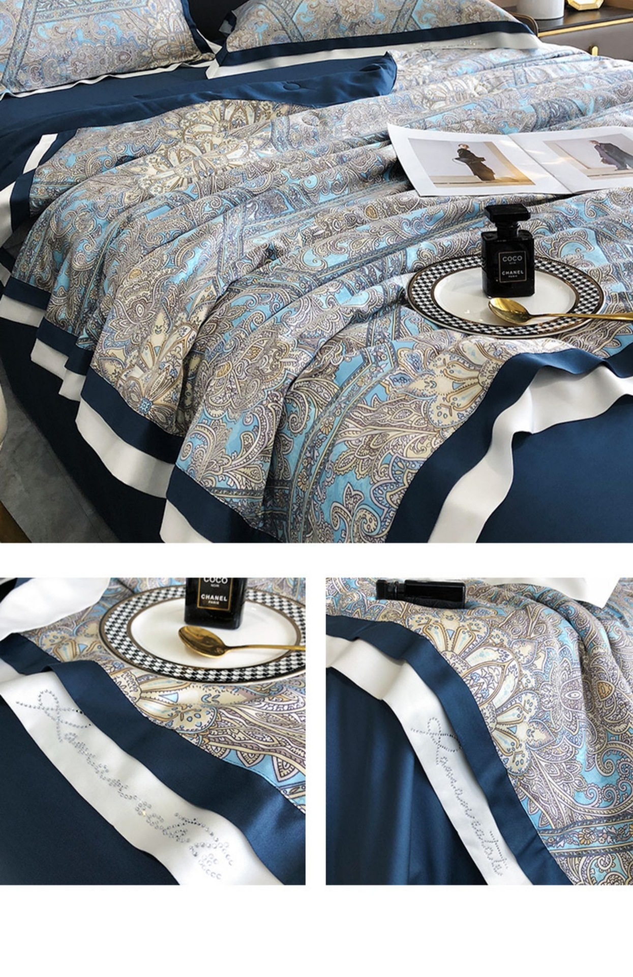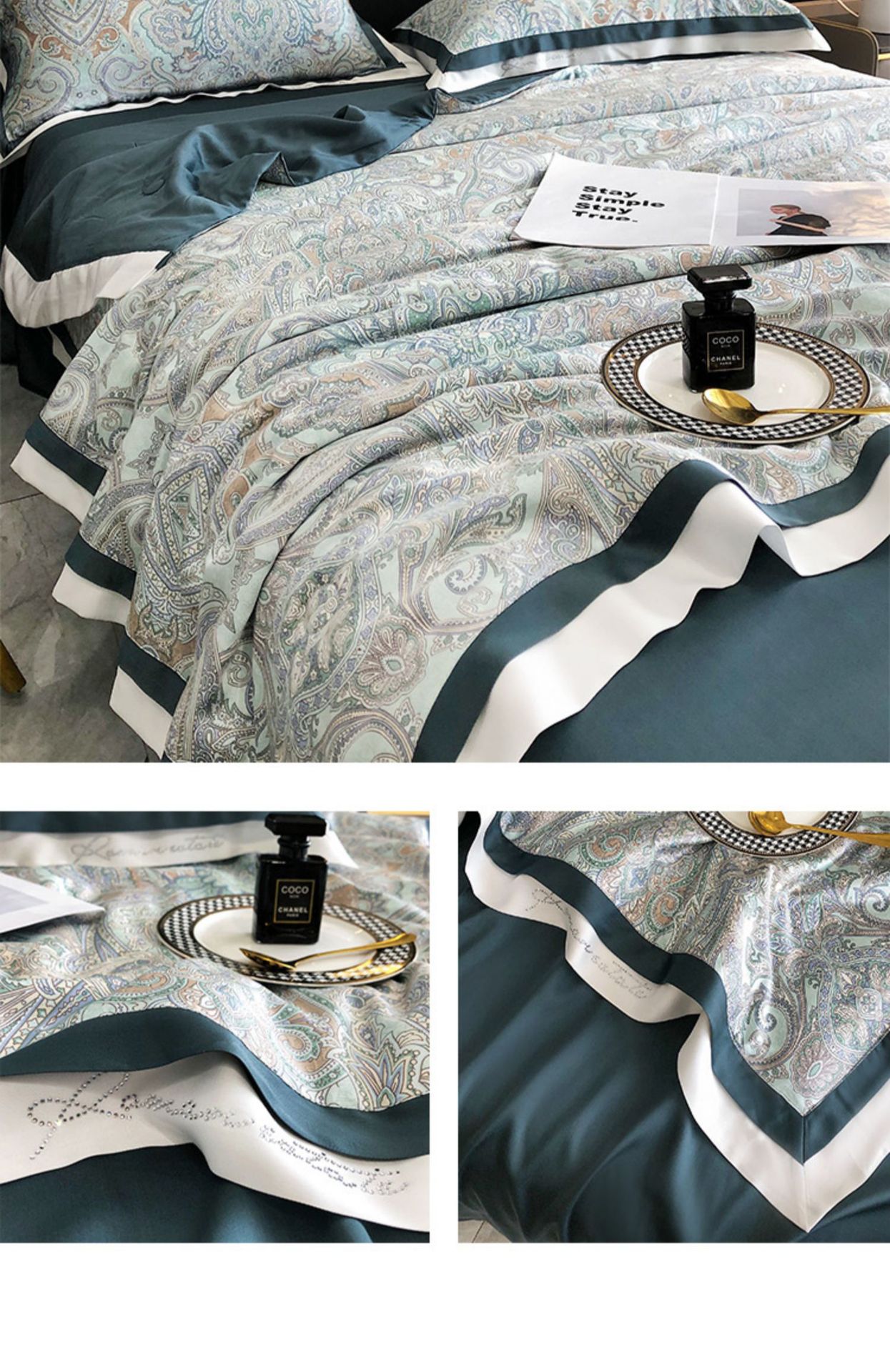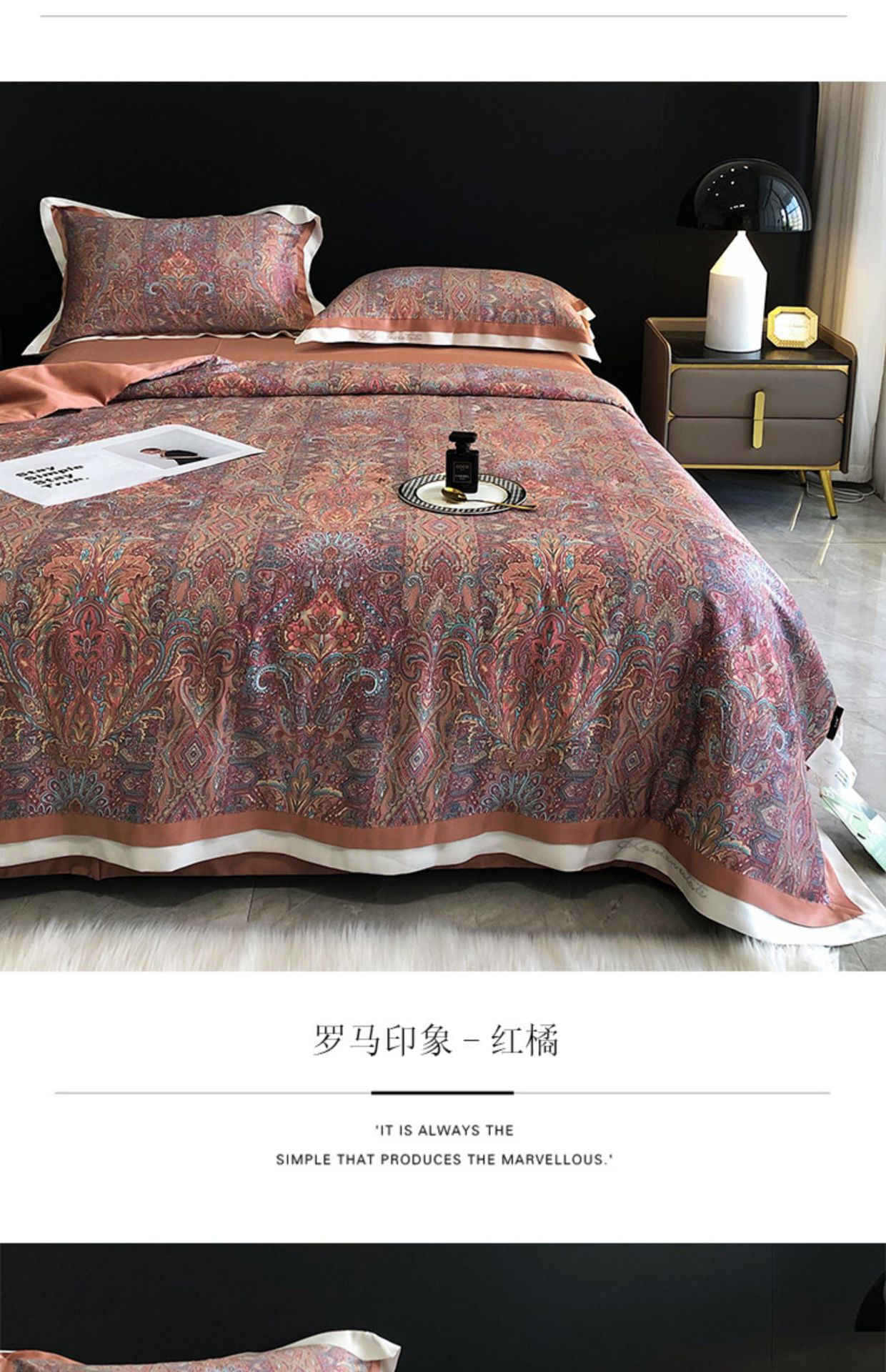 새로운 제품 인쇄 쿨 텐셀 브로케이드 여름 쿨 퀼트 4 피스 아이스 실크 여름 유럽 스타일 에어컨 퀼트 세척 가능한 얇은 신제품