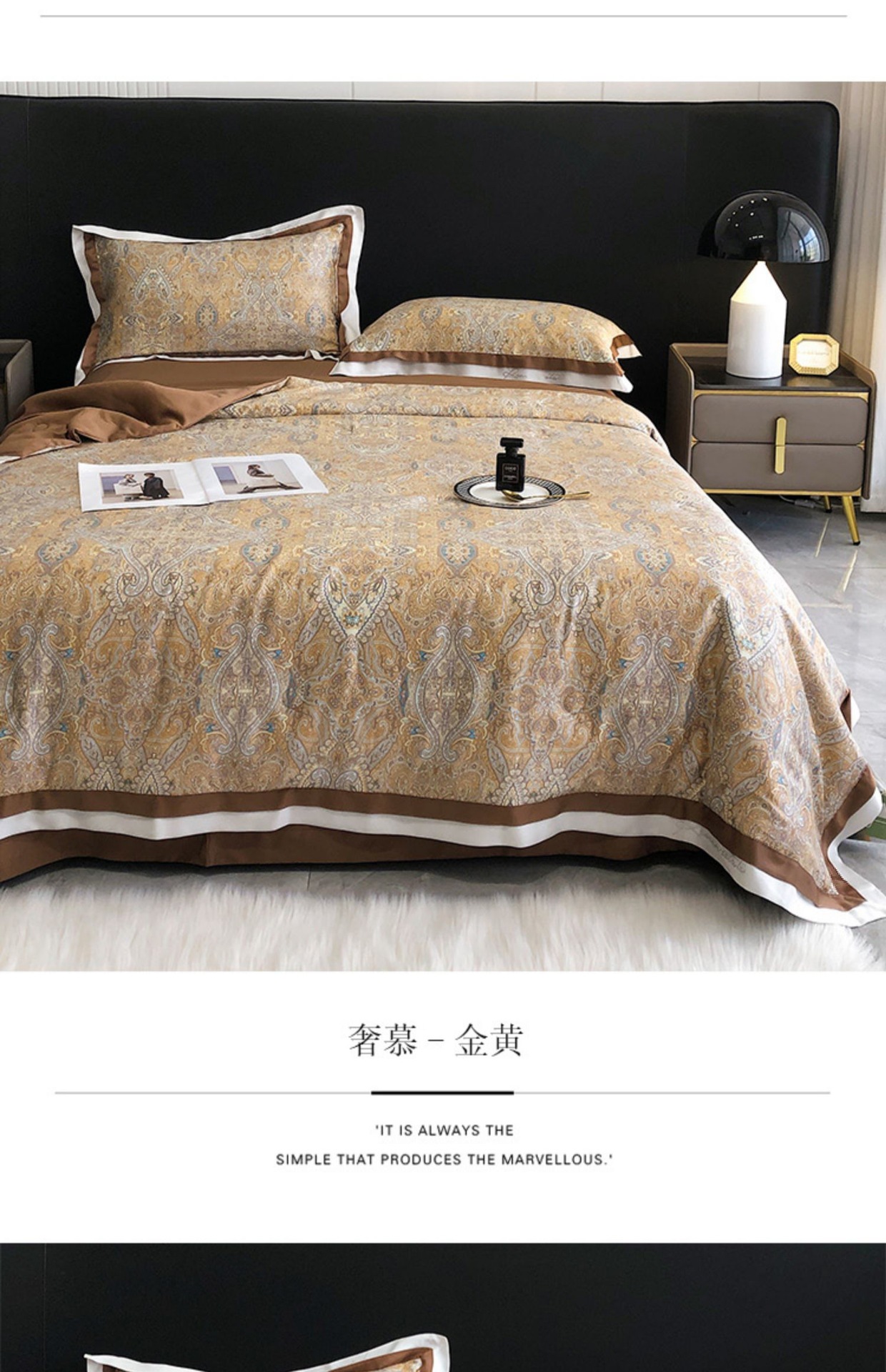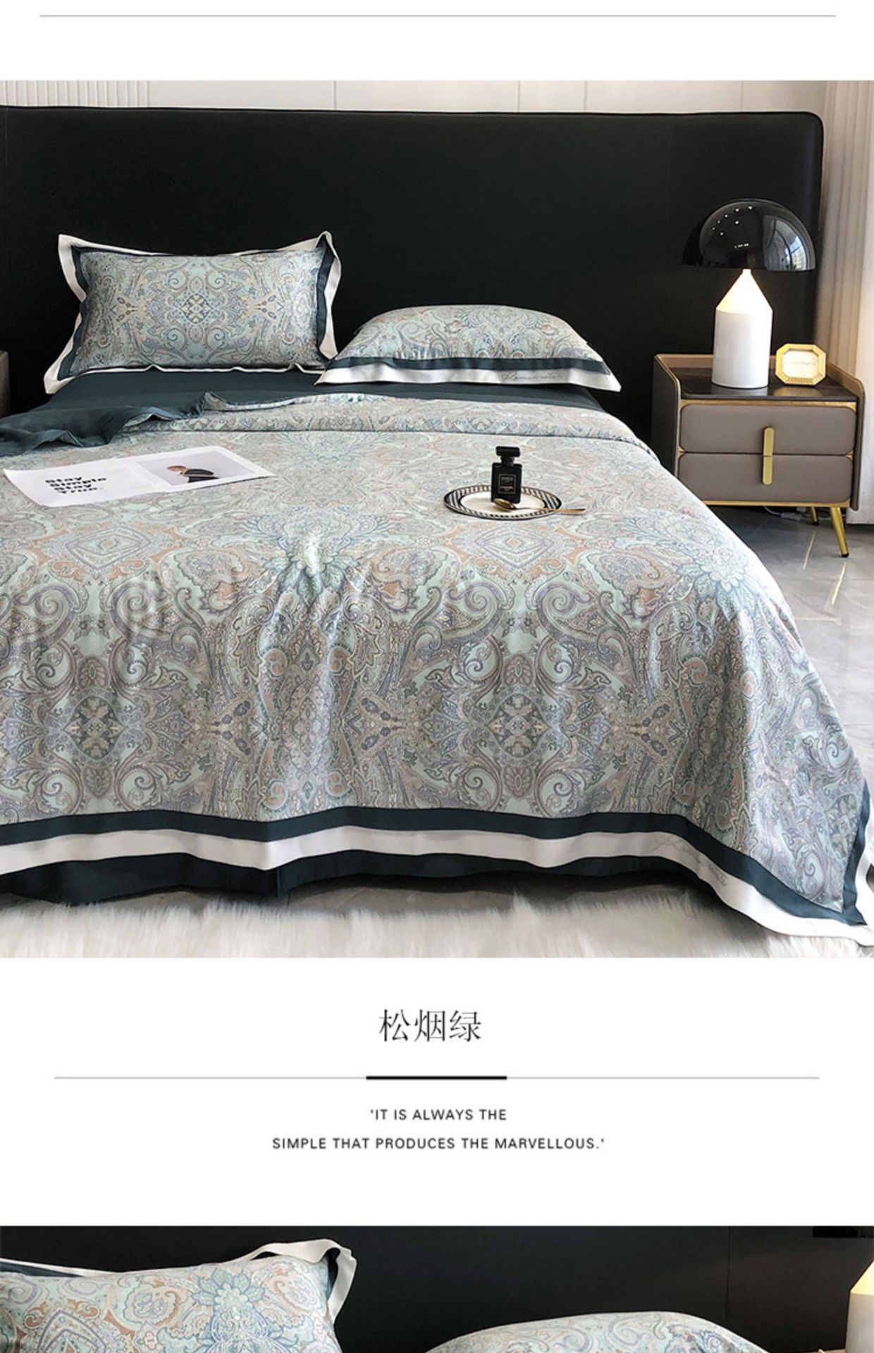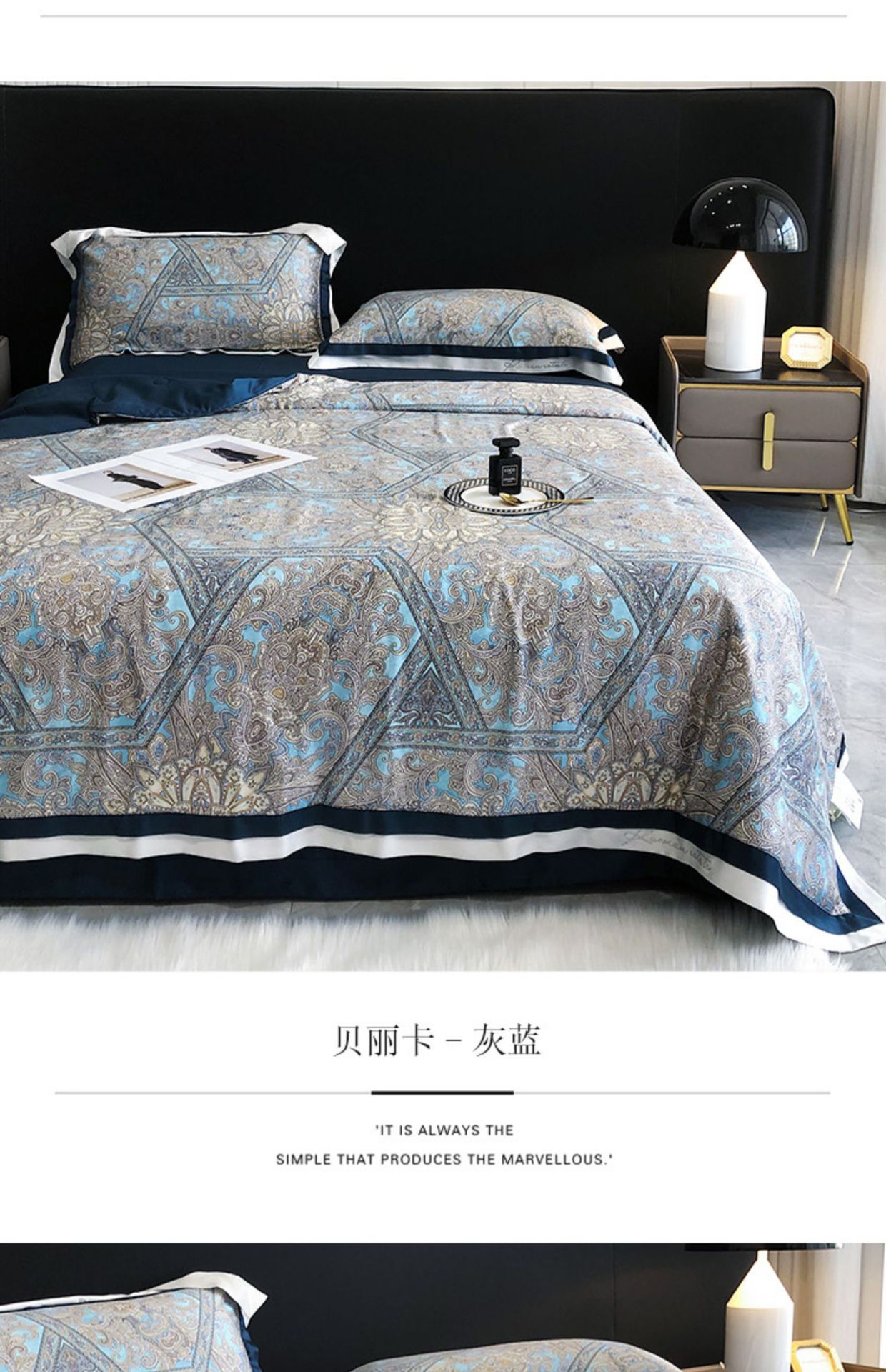 새로운 제품 인쇄 쿨 텐셀 브로케이드 여름 쿨 퀼트 4 피스 아이스 실크 여름 유럽 스타일 에어컨 퀼트 세척 가능한 얇은 신제품스토어 가기