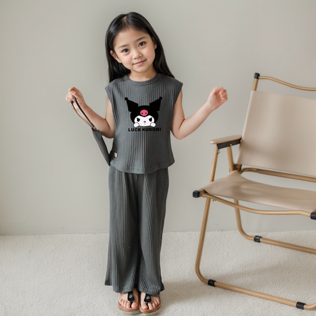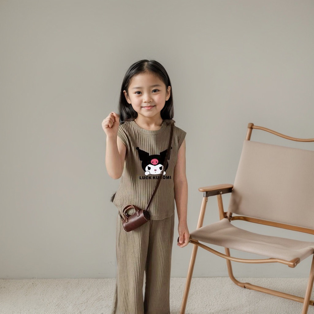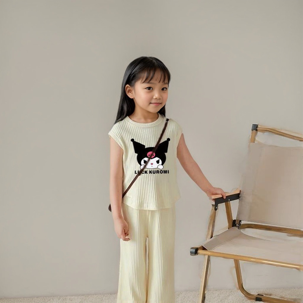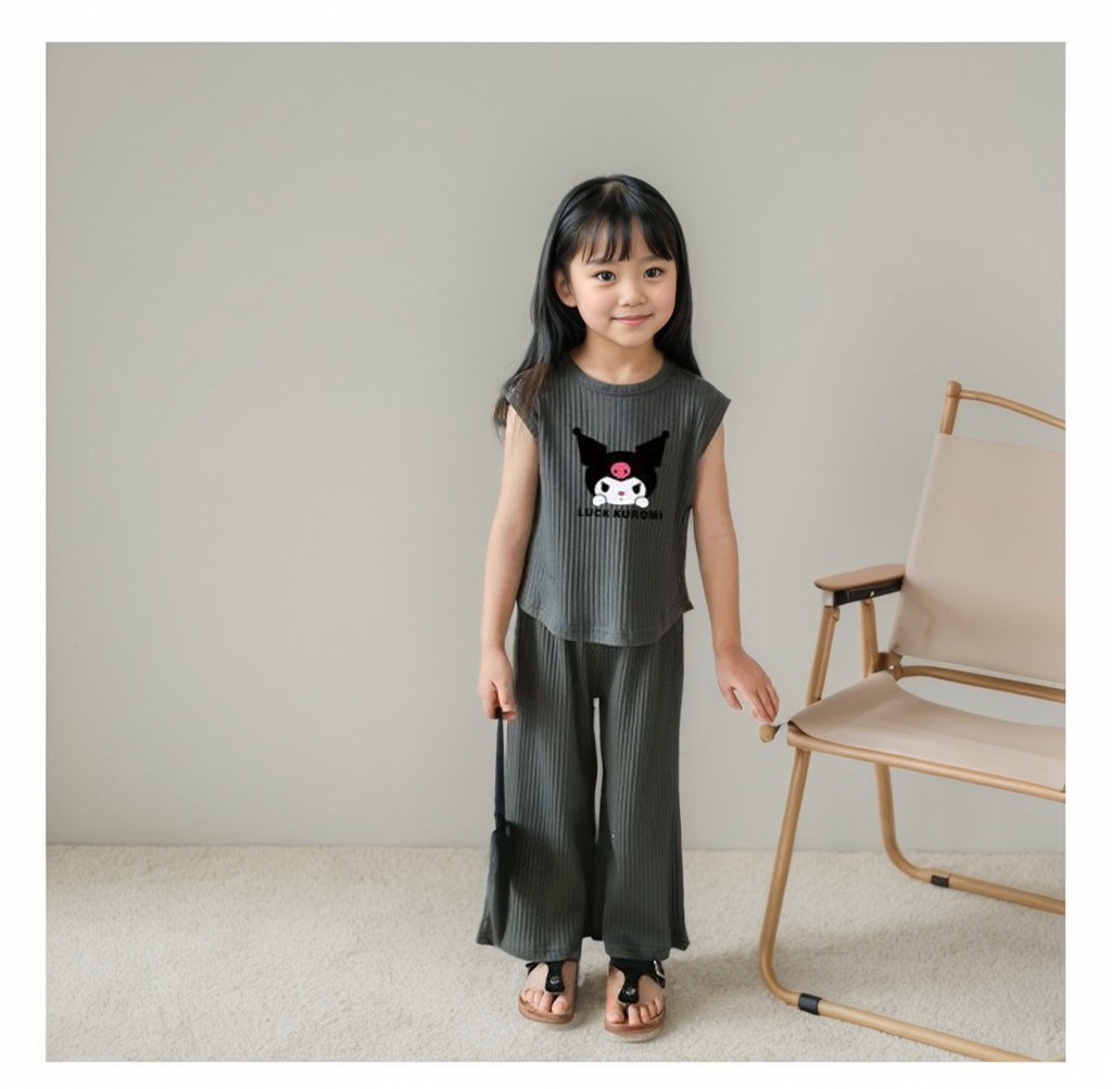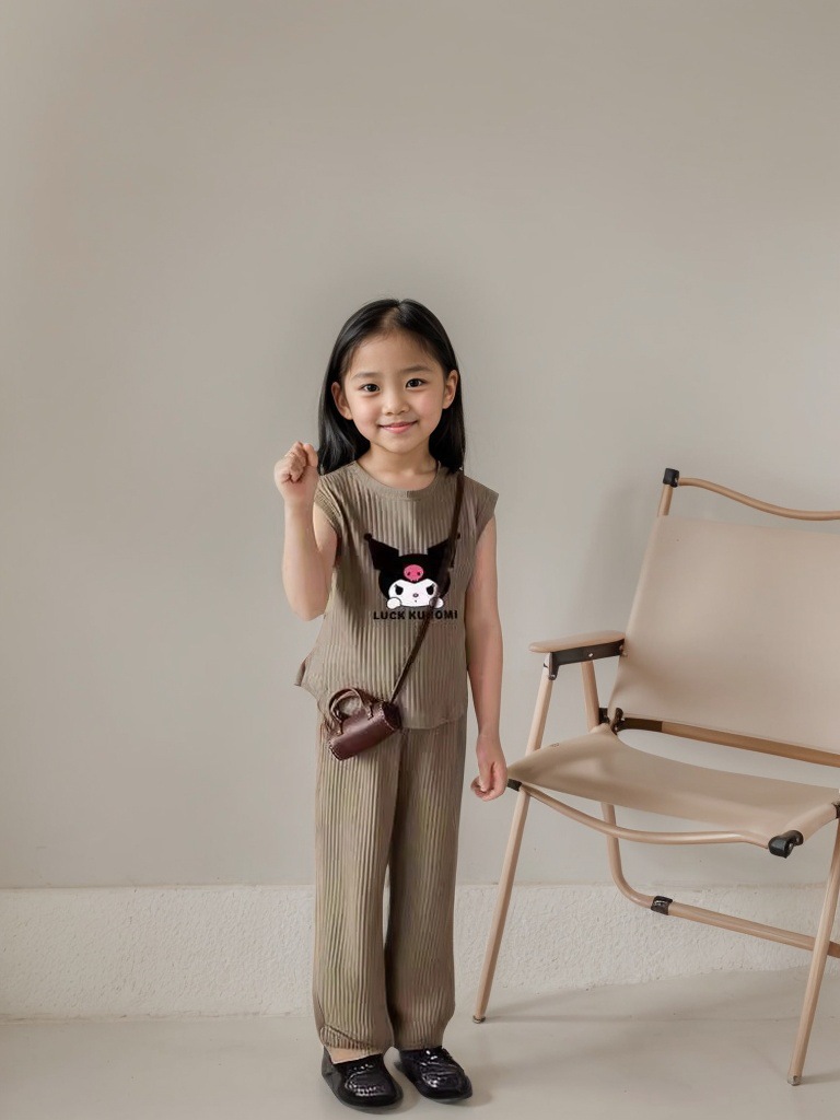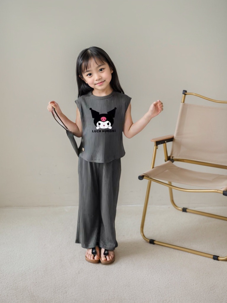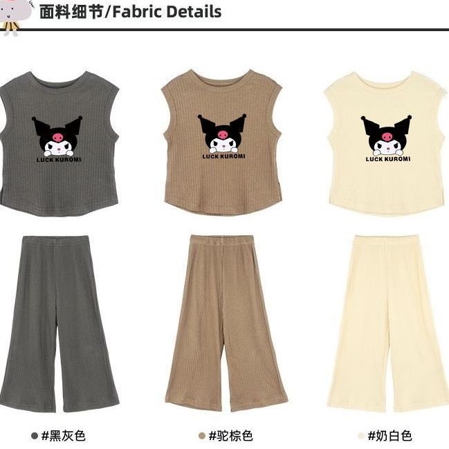 여름 새로운 소녀 아기 아이스 실크 세트 여름 민소매 조끼 최고 바지 유행 투피스 세트
