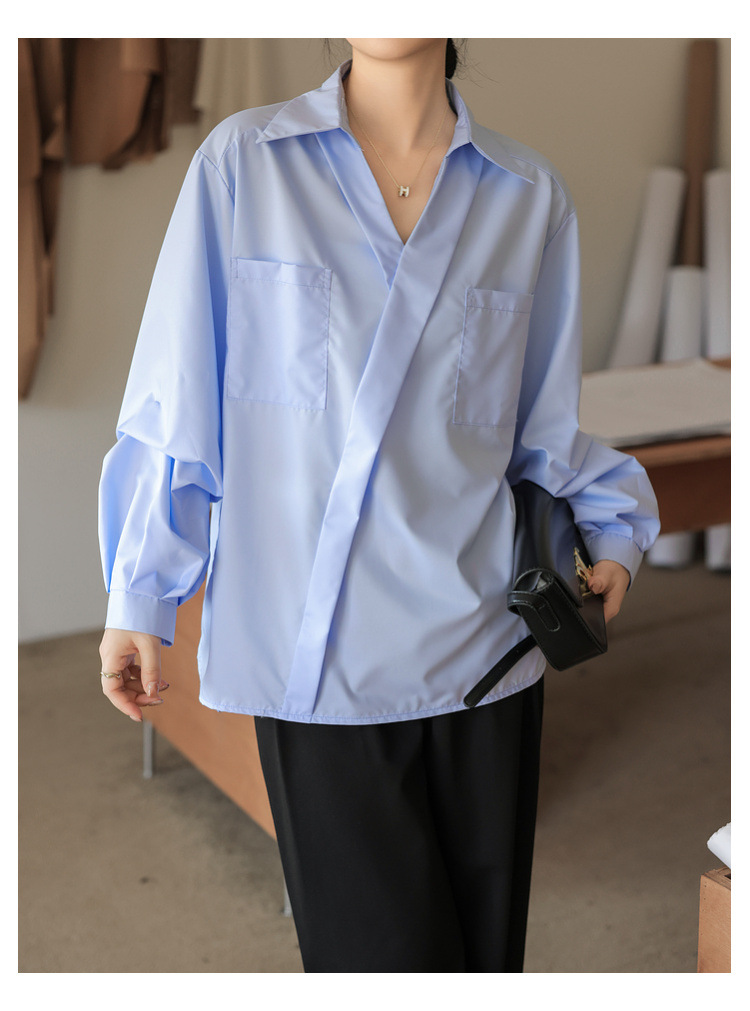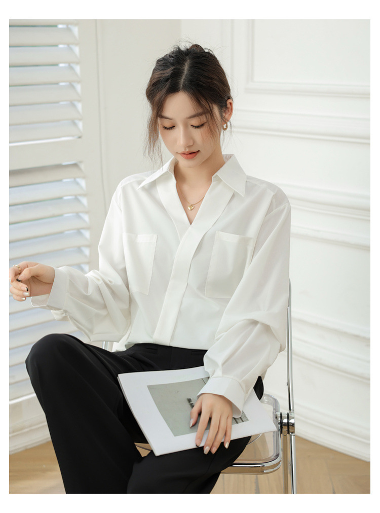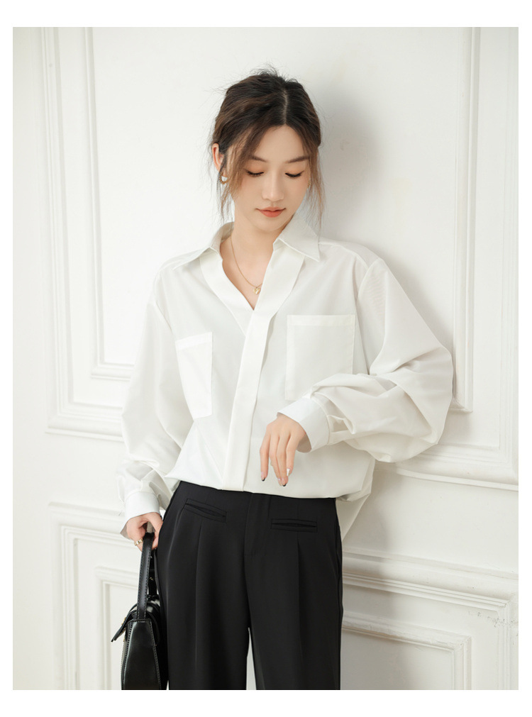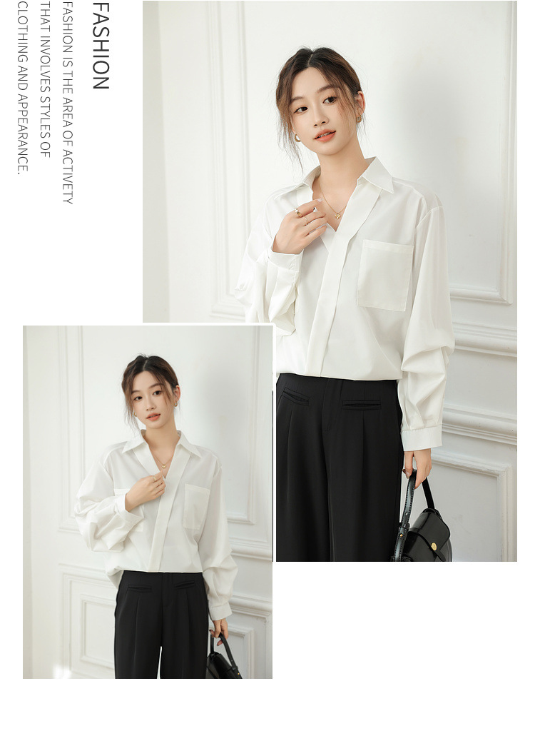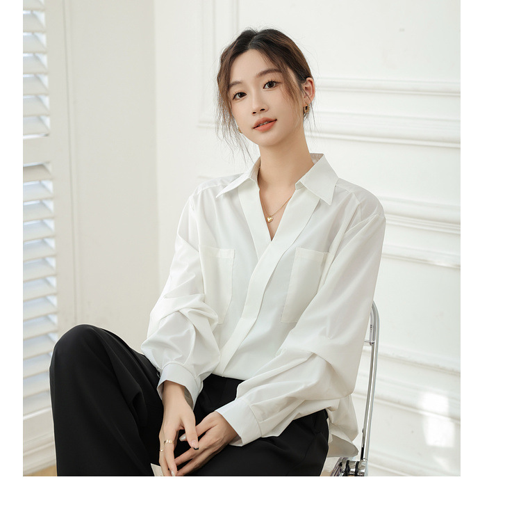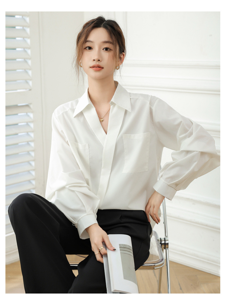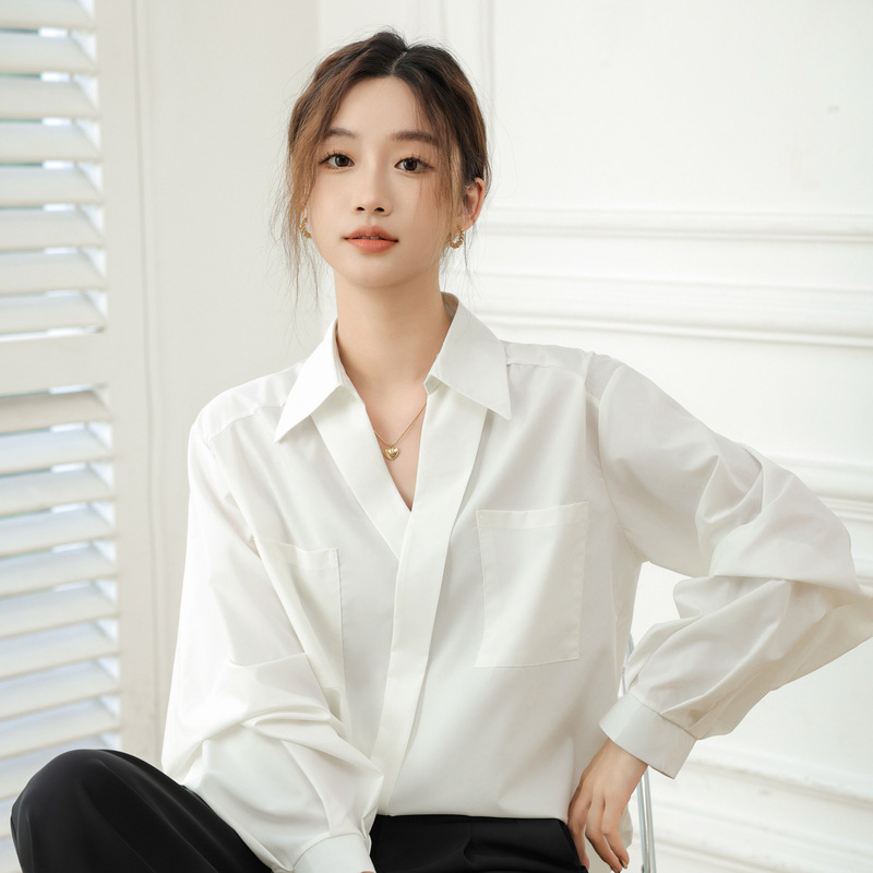유럽 역 여성의 2024 가을 새 흰색 긴팔 디자인 센스 셔츠 느슨한 슬리밍 라이트 럭셔리 하이 엔드 탑