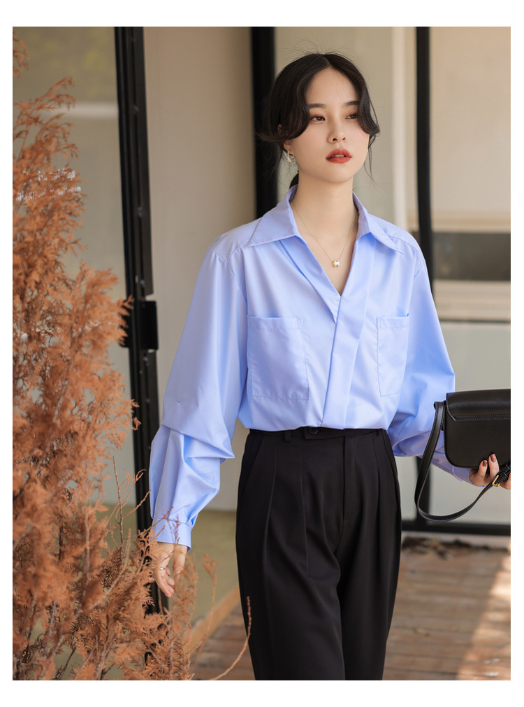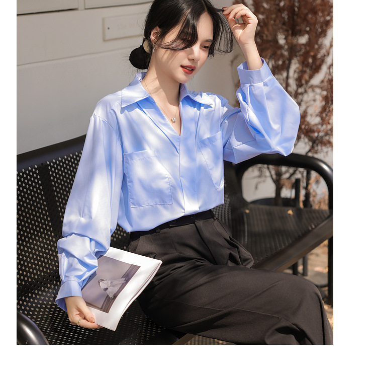 유럽 역 여성의 2024 가을 새 흰색 긴팔 디자인 센스 셔츠 느슨한 슬리밍 라이트 럭셔리 하이 엔드 탑스토어 가기