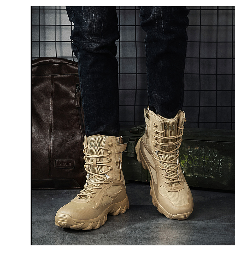 남성 신발 작업복 신발 국경 간 플러스 사이즈 통기성 전술 부츠 특수 하이 탑 야외 하이킹 훈련 전투 부츠 하이 탑 부츠스토어 가기