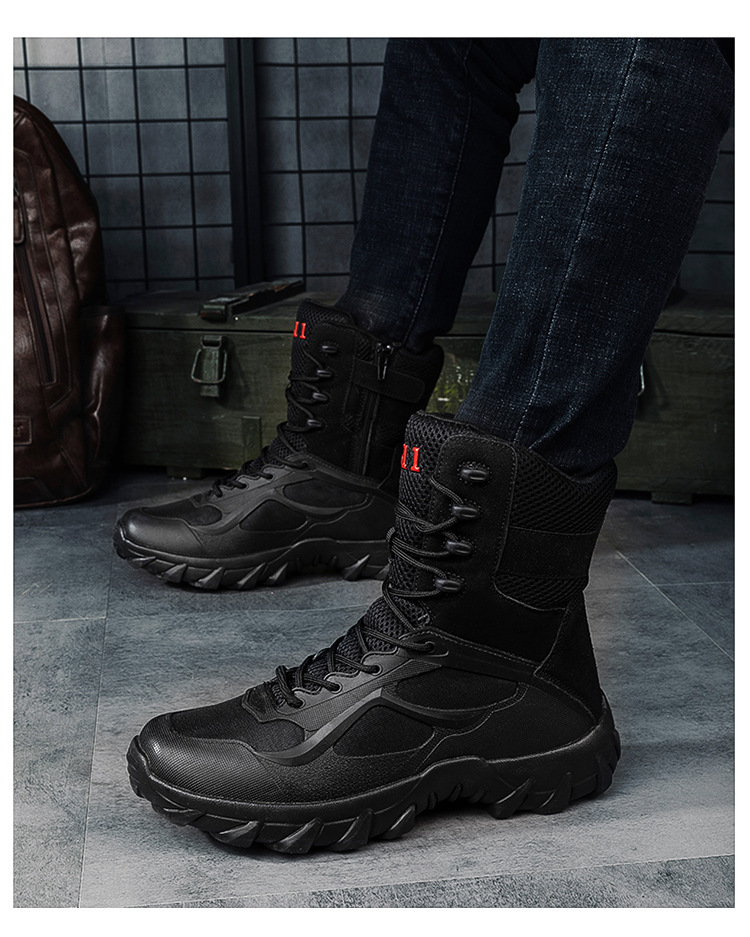 남성 신발 작업복 신발 국경 간 플러스 사이즈 통기성 전술 부츠 특수 하이 탑 야외 하이킹 훈련 전투 부츠 하이 탑 부츠