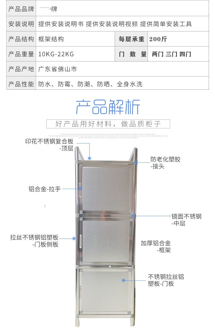 두꺼운 간단한 스테인레스 스틸 작은 캐비닛 차 캐비닛 알루미늄 합금 찬장 발코니 보관 캐비닛 주방 보관 작은 신제품