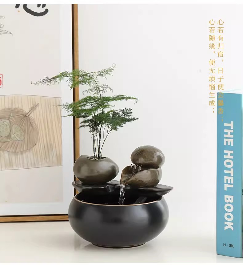 창조적 인 자동 순환 흐르는 물 작은 물고기 탱크 송금 돈 만들기 데스크탑 분수 장식품 오프닝 선물 장식 장식품