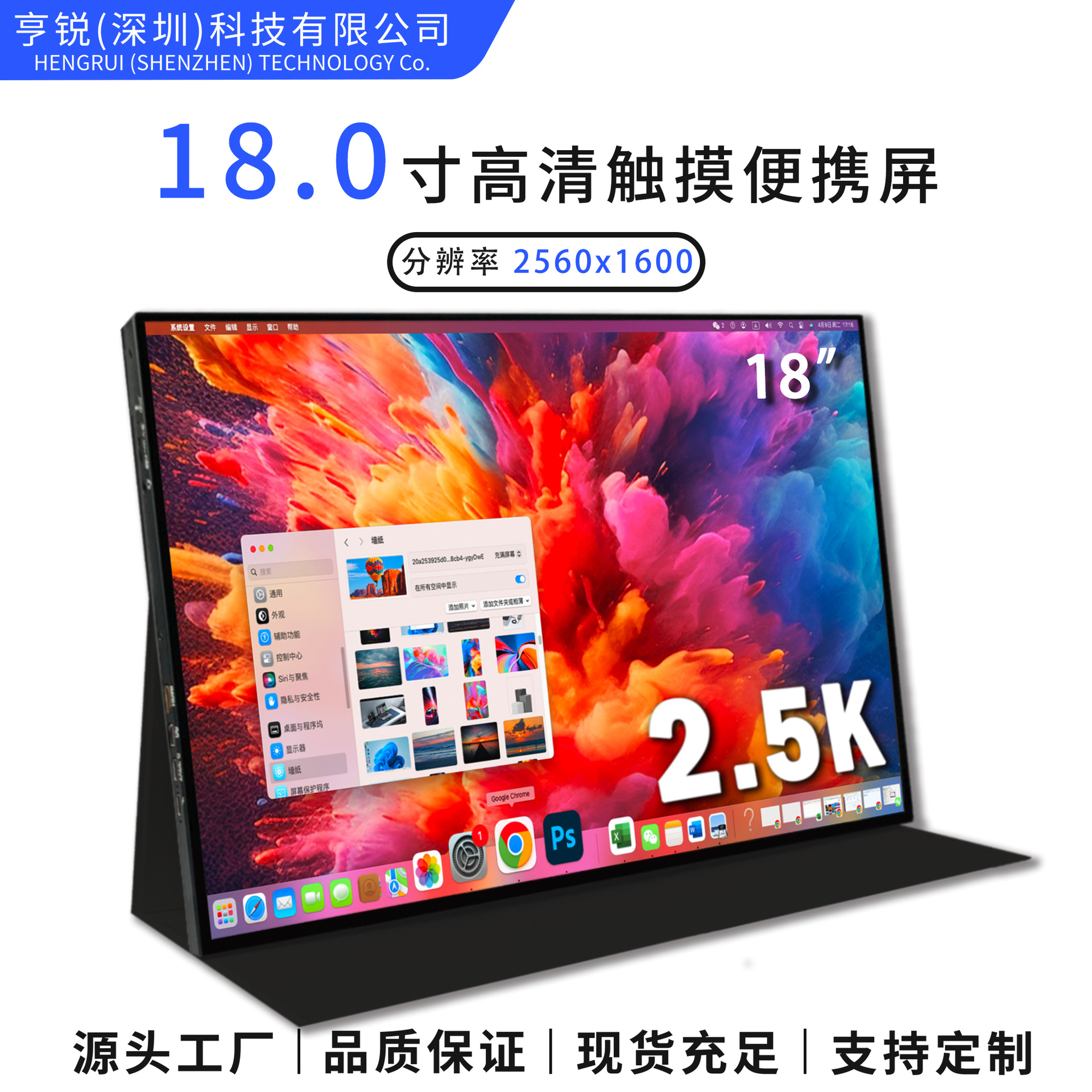 제조 업체 사용자 정의 초 고화질 디스플레이 터치 144Hz 높은 브러시 내장 배터리 18 인치 휴대용 화면 소스 제조 업체스토어 가기