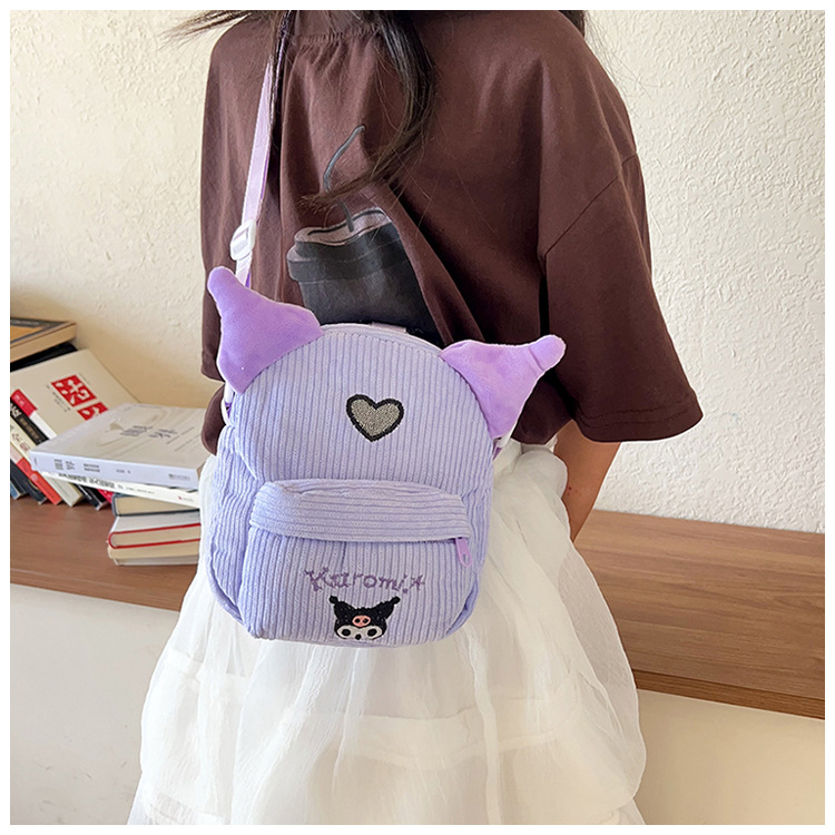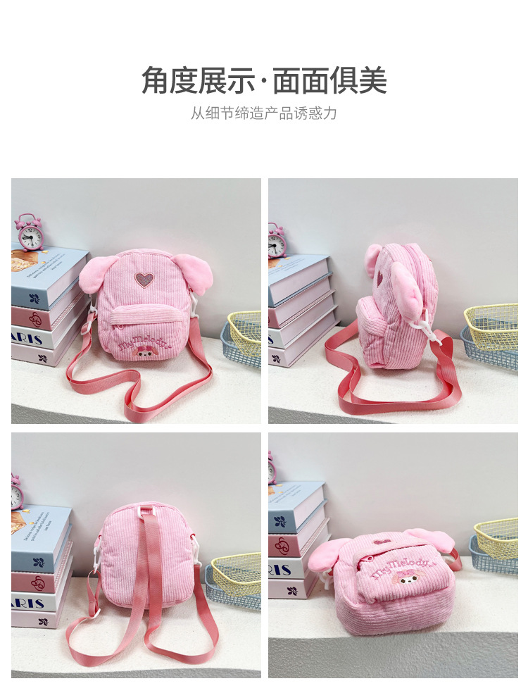 어린이 새로운 벨벳 가방 2024 소녀의 신선한 어깨 크로스 바디 가방 대용량 귀여운 만화 어린이 배낭