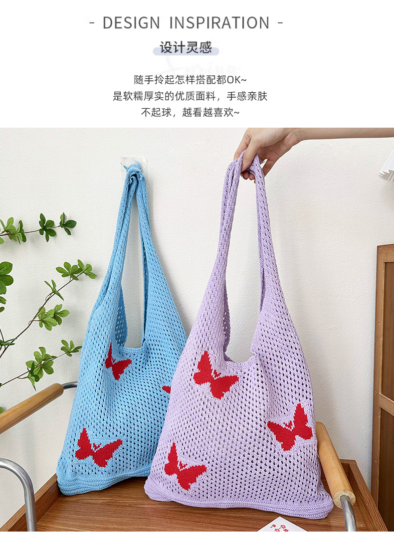 어깨 가방 새 Ins 할로우 니트 핸드 백 짠 가방 대용량 토트 백 체리 숄더 백