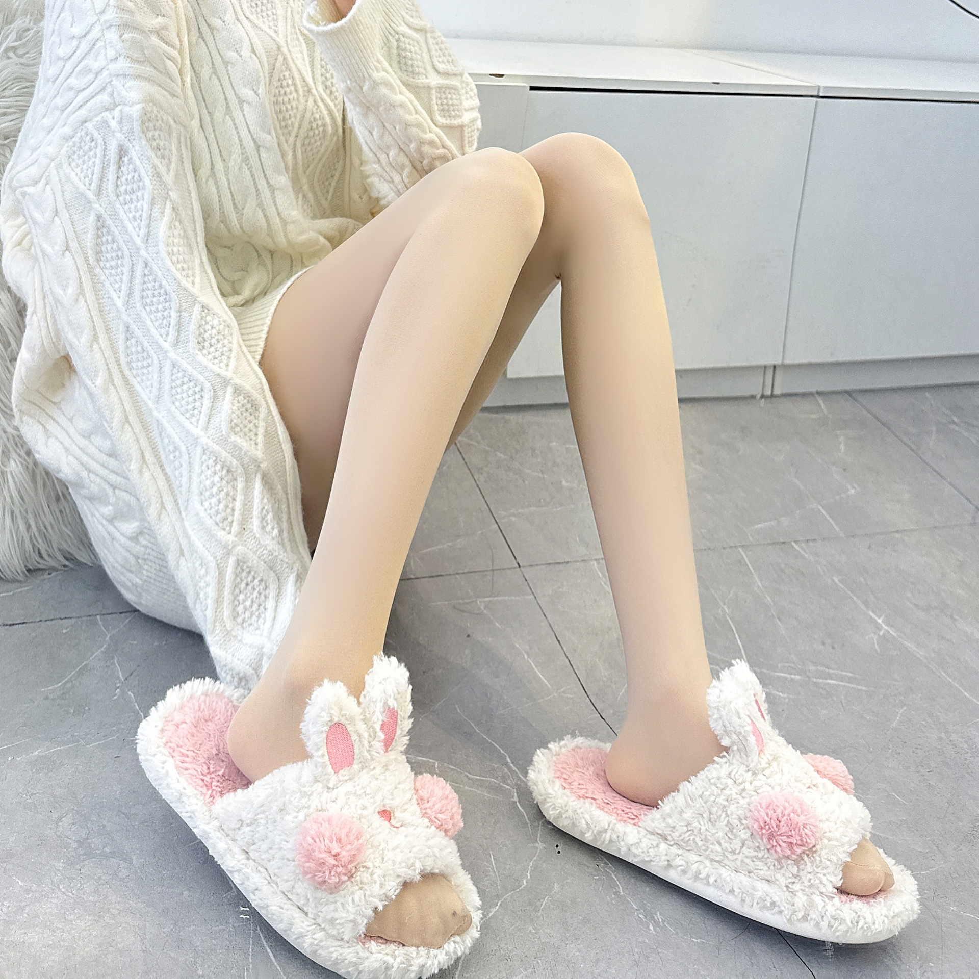 소스 공장 일본 우유 흰색 벨벳 바닥 바지 검은 스타킹 여성 가을과 겨울 두꺼운 보안 유통 세대스토어 가기