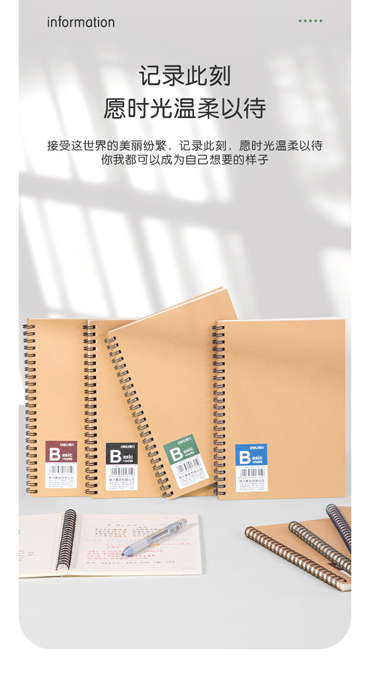 델리 LA560 스파이럴 A5 노트북 코일 북 스파이럴 소프트 카피 크래프트 종이 60 페이지스토어 가기