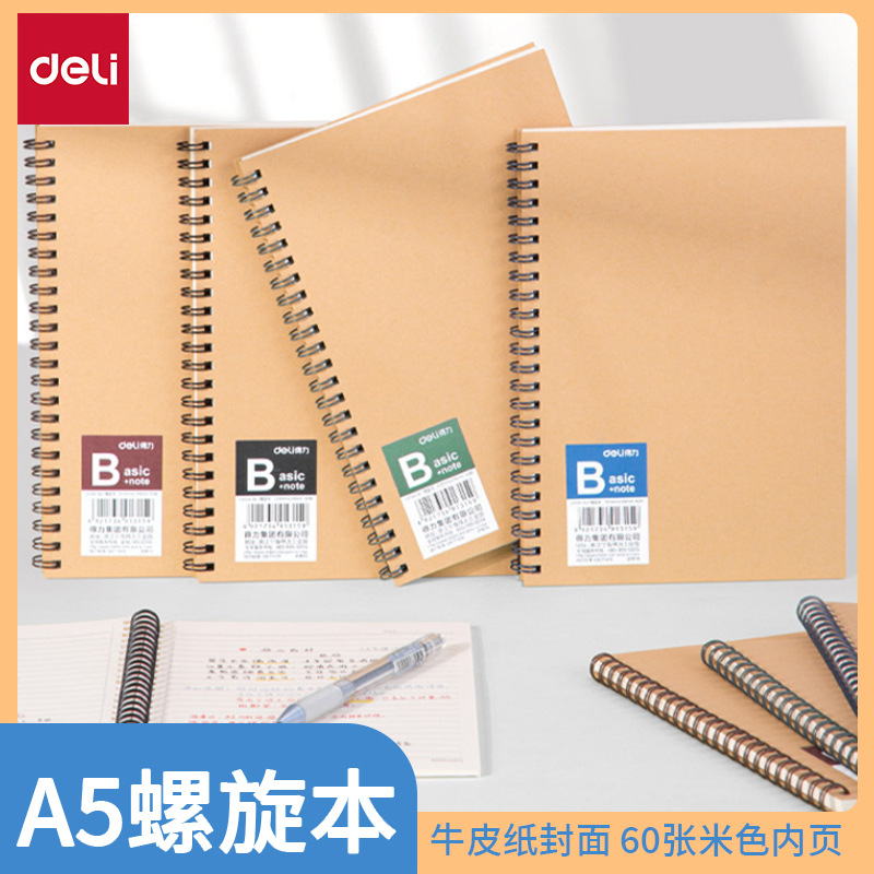 델리 LA560 스파이럴 A5 노트북 코일 북 스파이럴 소프트 카피 크래프트 종이 60 페이지
