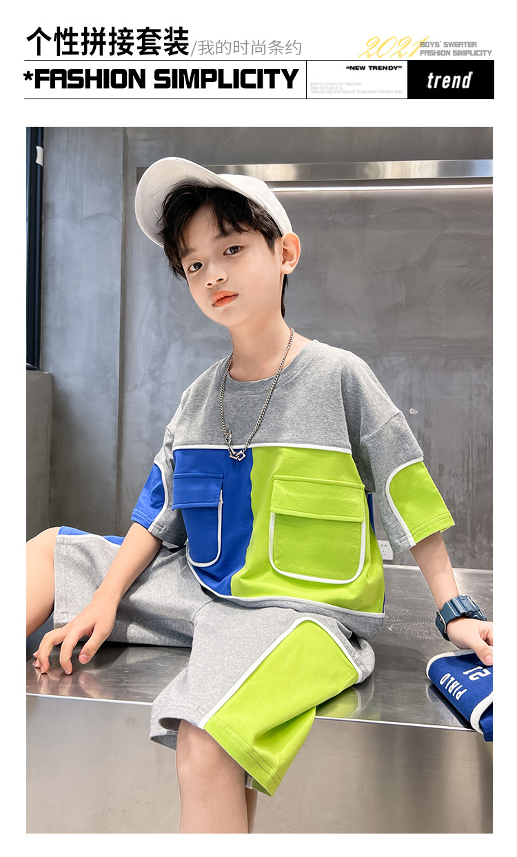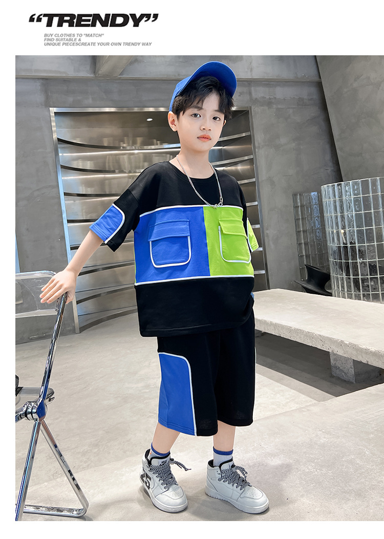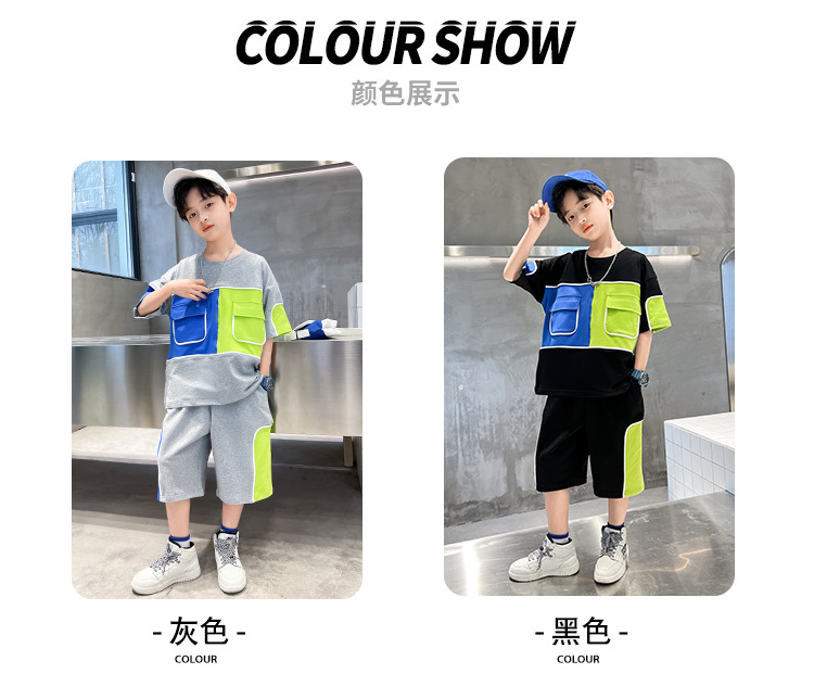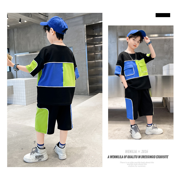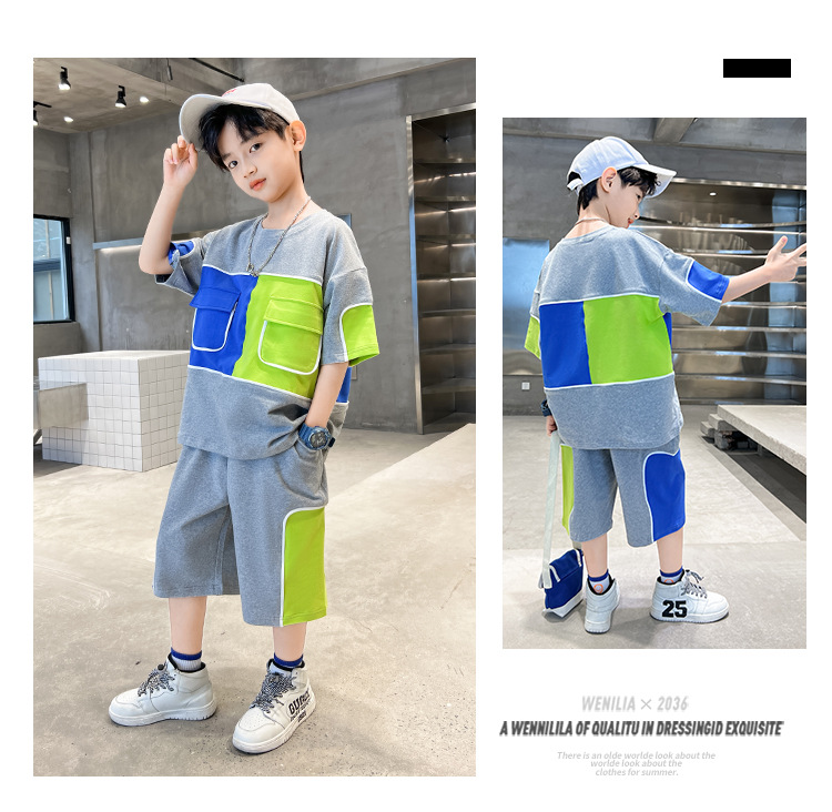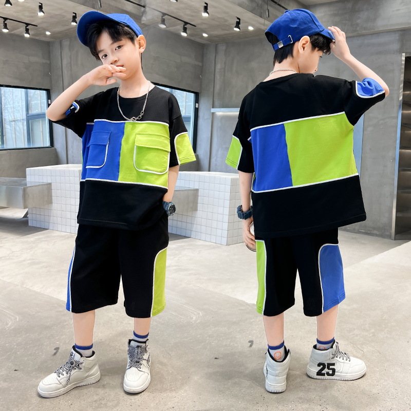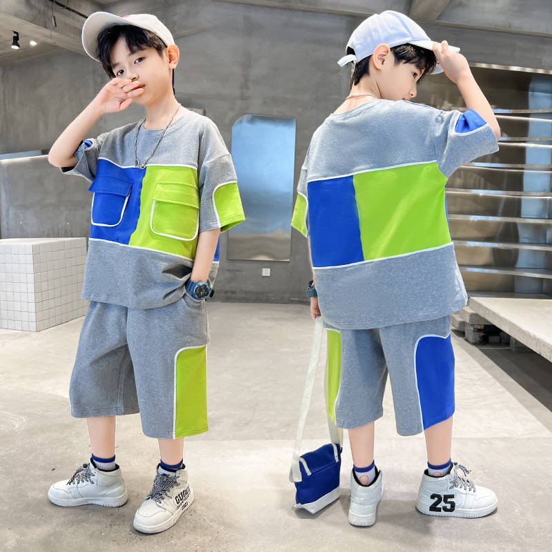 어린이 착용 소년 여름 착용 세트 2024 새로운 한국 스타일 여름 큰 소년 잘 생긴 두 유행스토어 가기