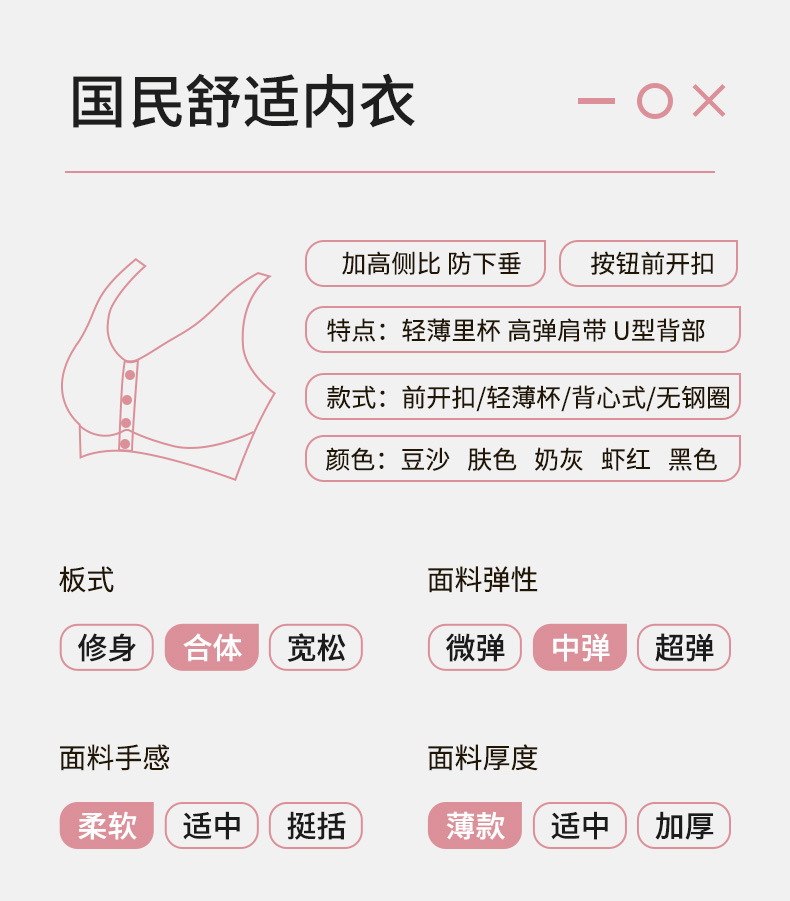 여성용 크로스보더 프론트 오픈 버튼 브라, 라지 사이즈, 스틸 링 없음, 푸쉬업, 처짐 방지, 고정 컵 조끼 스타일 브라스토어 가기