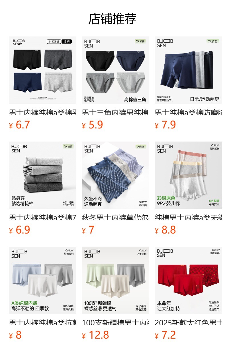 남성용 순면 A급 면 7A 항균 사각팬티 가을 겨울 통기성 큰 사이즈 남성용 순면 사각팬티스토어 가기