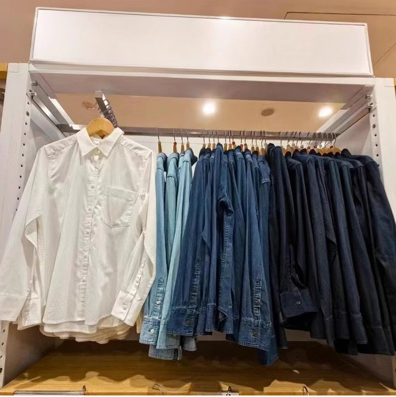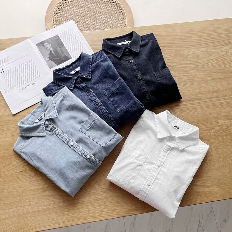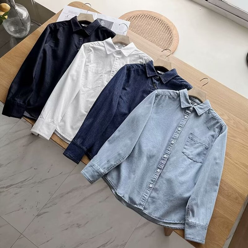 피팅 룸 2024 가을 여성의 부드러운 빈티지 데님 셔츠 긴 소매 셔츠 SY470735/472837스토어 가기