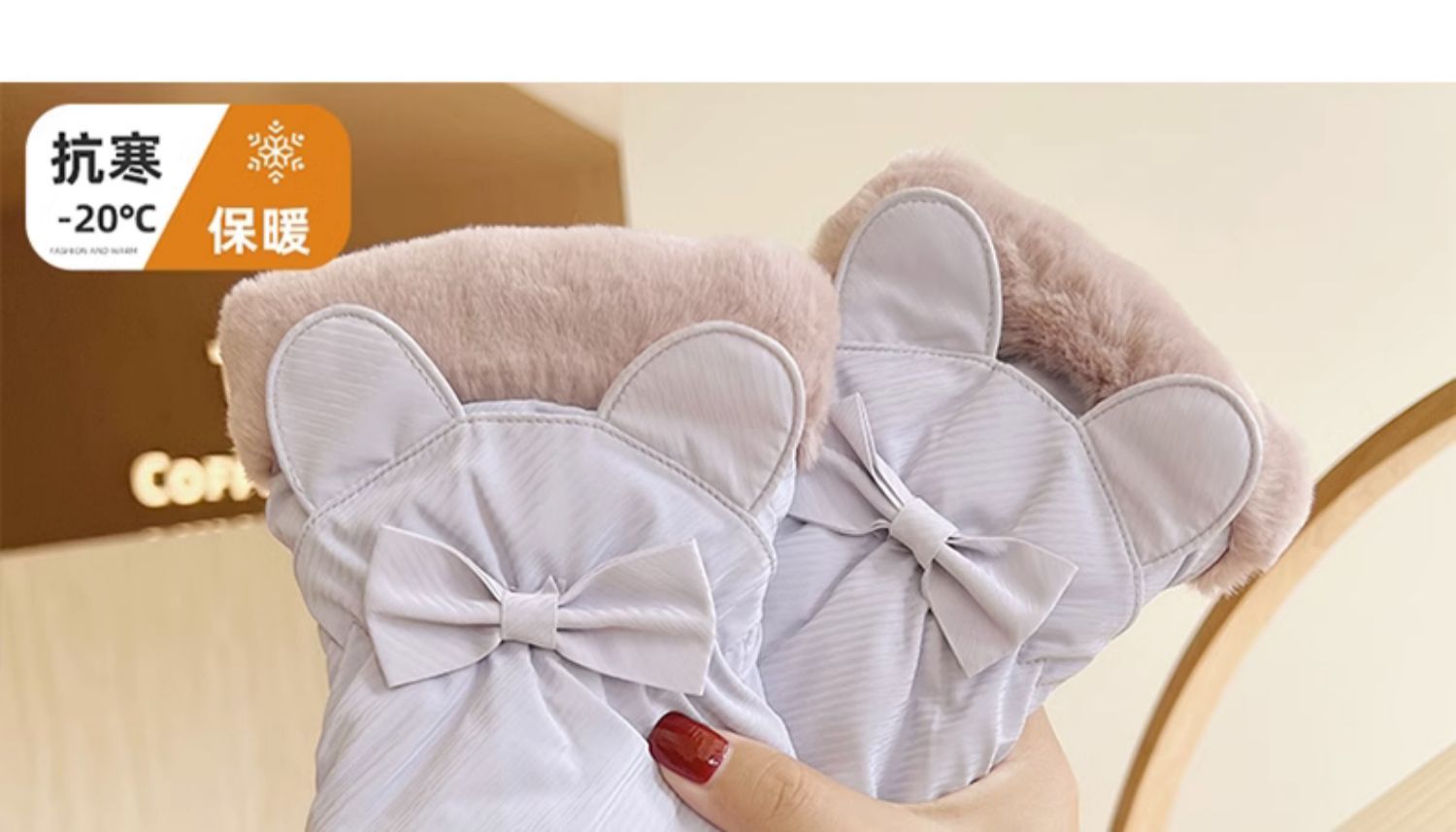 여성용 겨울 장갑, 새로운 스타일, 사이클링용, 벨벳 안감, 귀엽고 따뜻함, 여성용 전기 자전거, 겨울 스키, 터치스크린, 미끄럼 방지