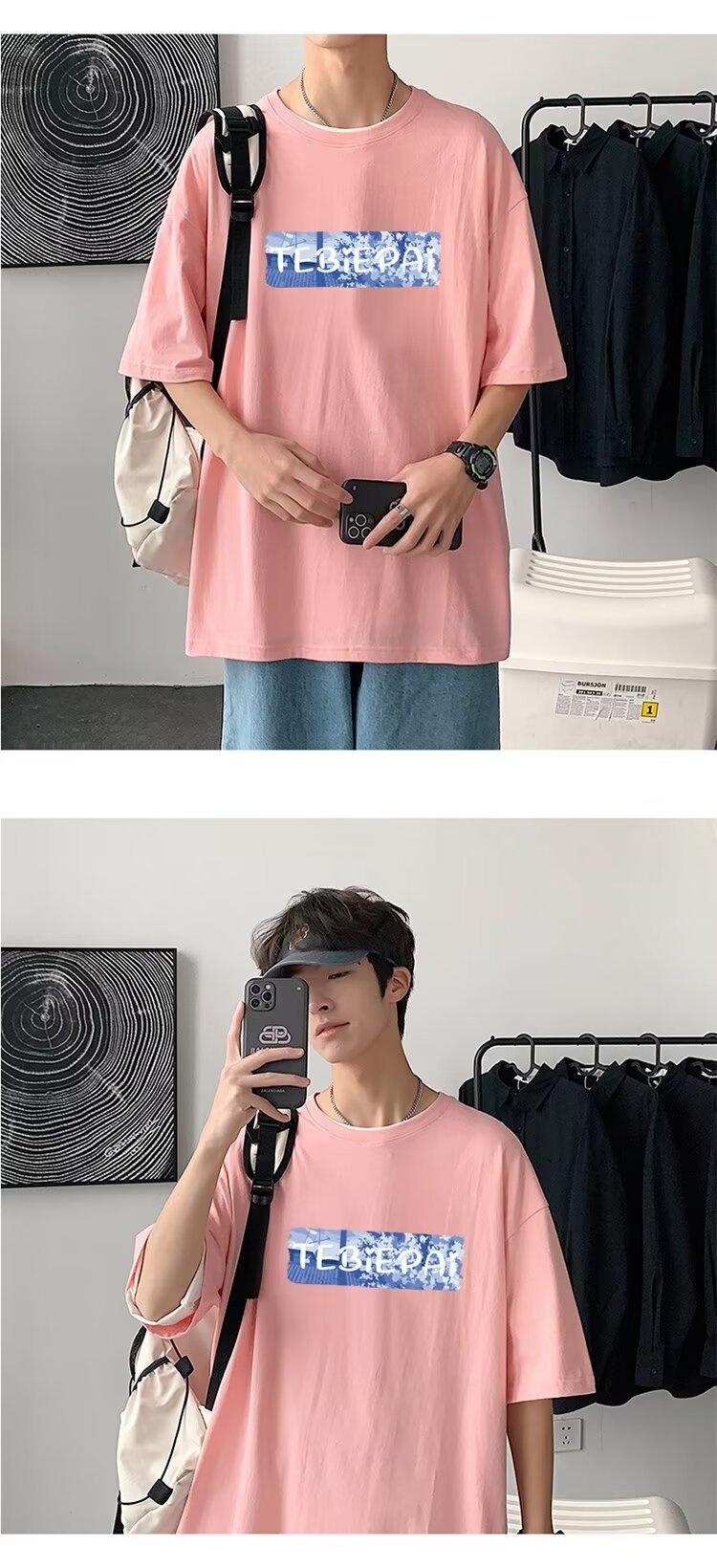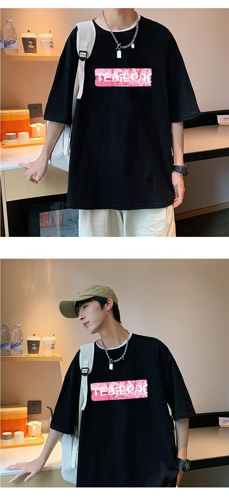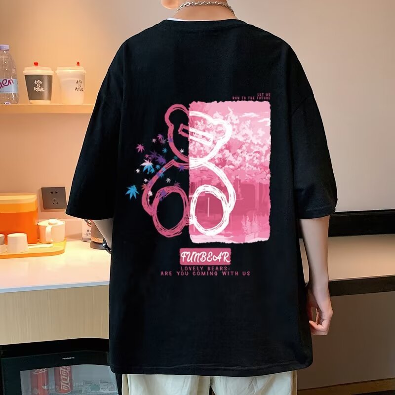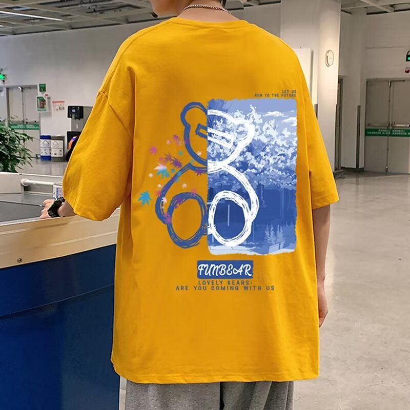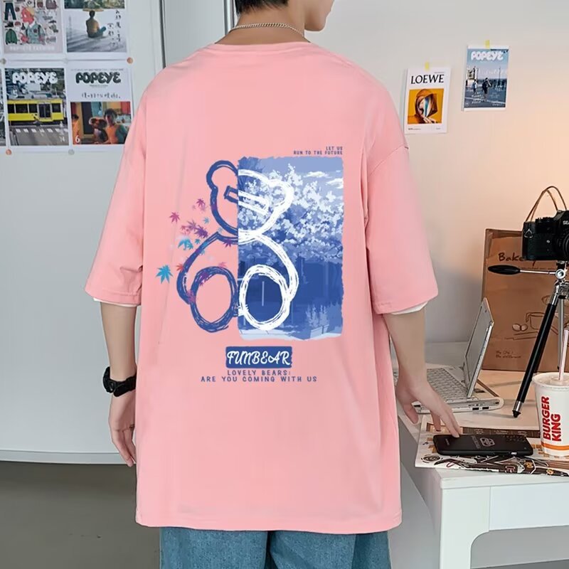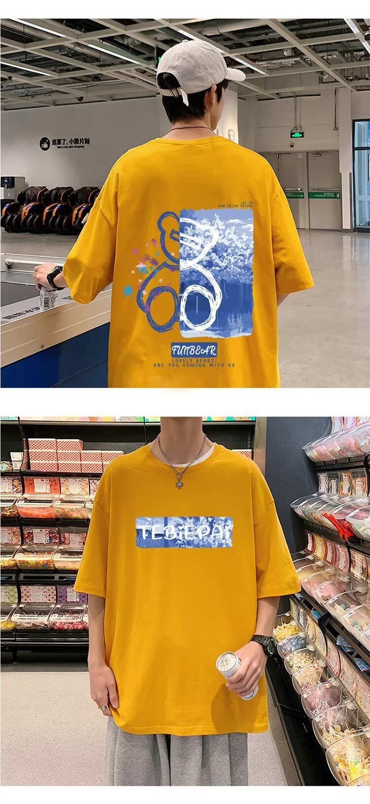 반팔 티셔츠 남자 여름 홍콩 스타일 Ins 트렌디 브랜드 올매치 느슨한 플러스 사이즈 베어 프린트 반팔 티셔츠 탑스토어 가기