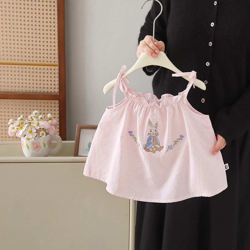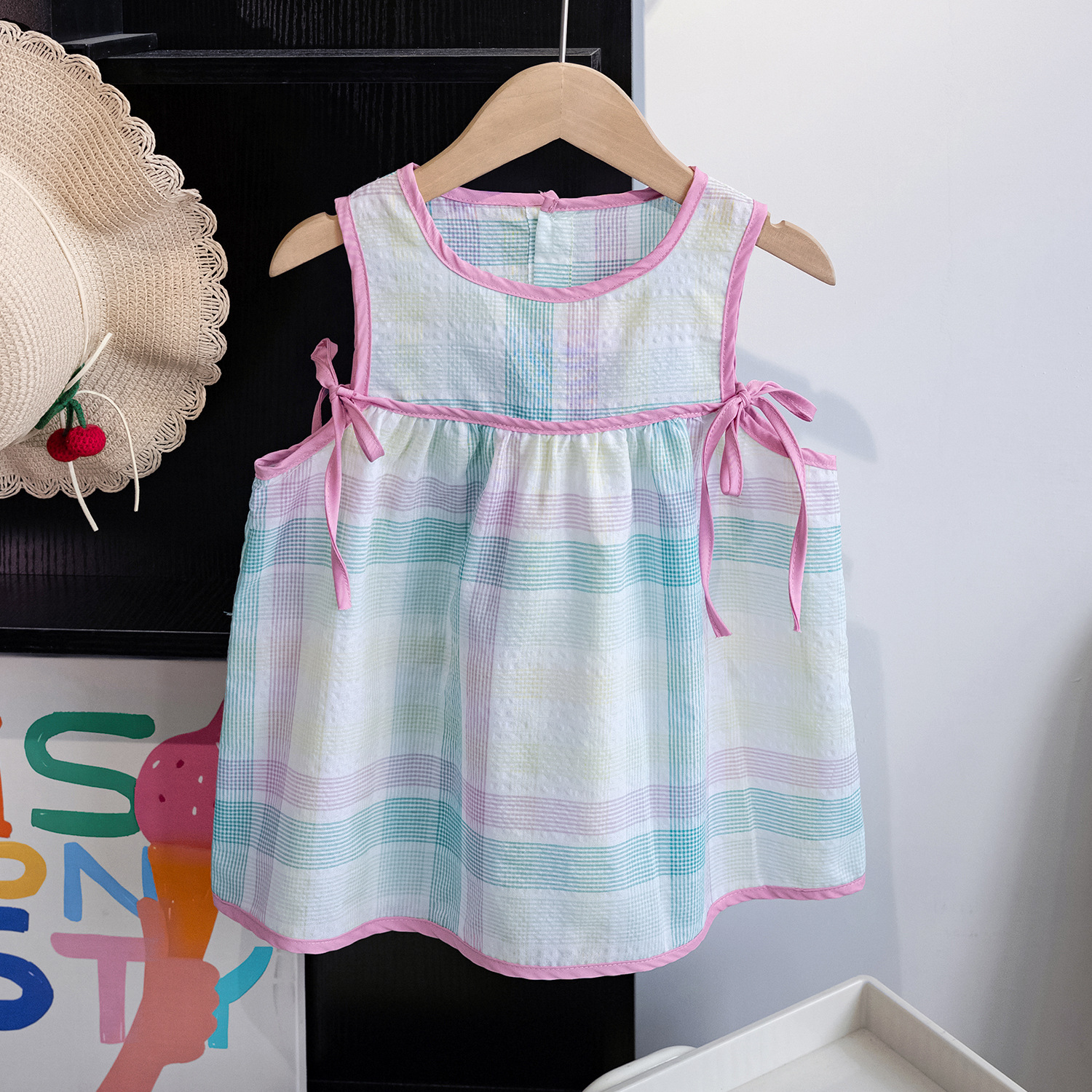 여자 새 2024 여름 얇은 셔츠 아기 한국 스타일 유행 격자 무늬 얇은 인형 셔츠 유행 조끼스토어 가기