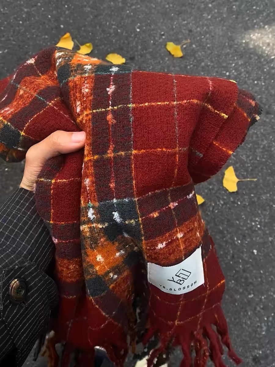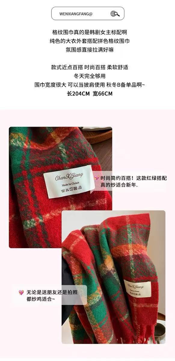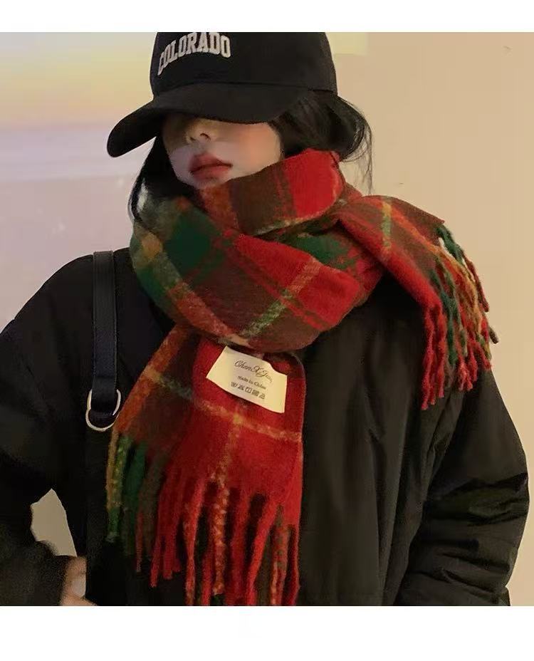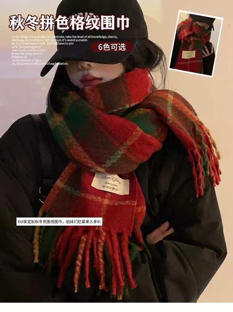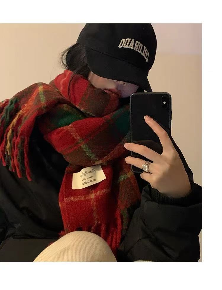 크리스마스 격자 무늬 스카프 여자 새 겨울 한국식 올매치 모조 캐시미어 목도리 두꺼운 따뜻한 커플 술 스카프스토어 가기