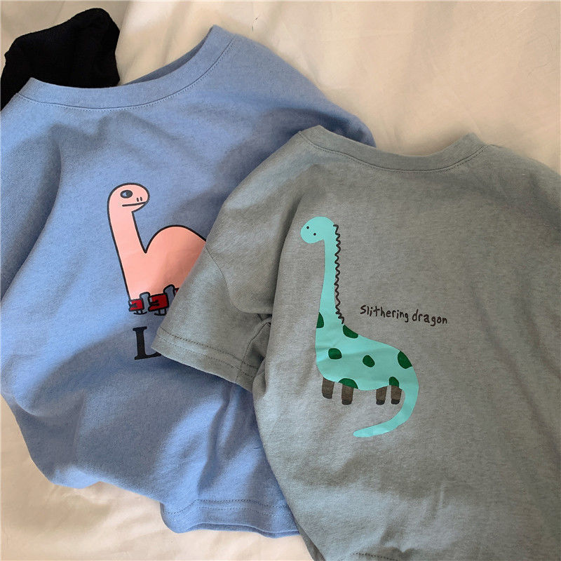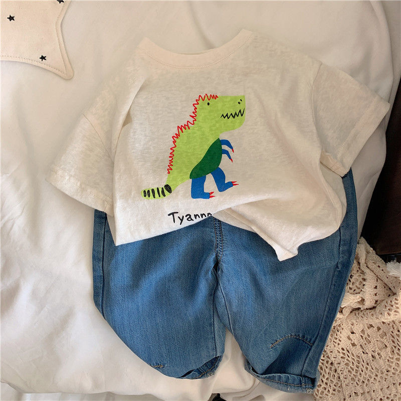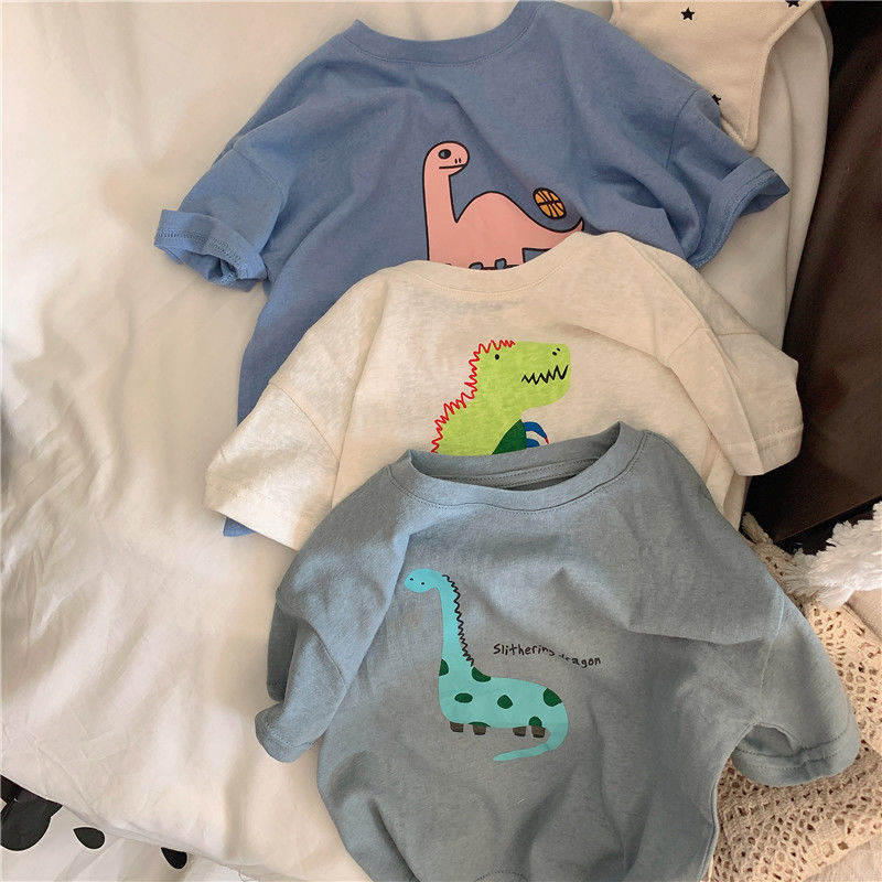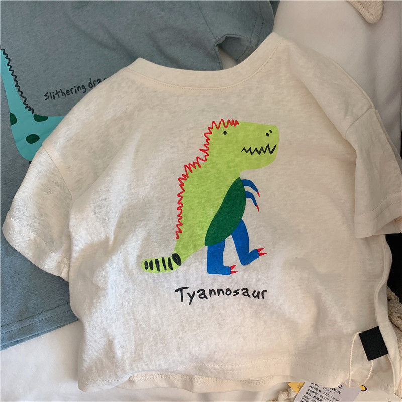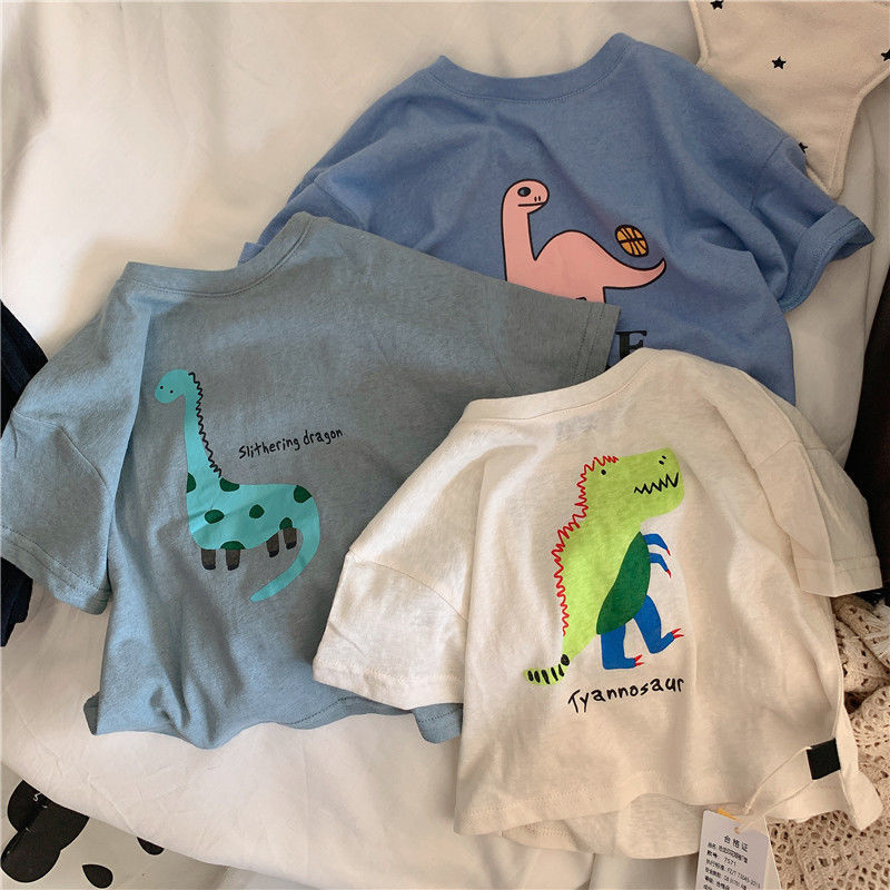 어린이 티셔츠 여름 코튼 보이 어린이 착용 한국 반팔 잘 생긴 소년 톱 T 카통 공룡 베이비베이스 셔츠스토어 가기