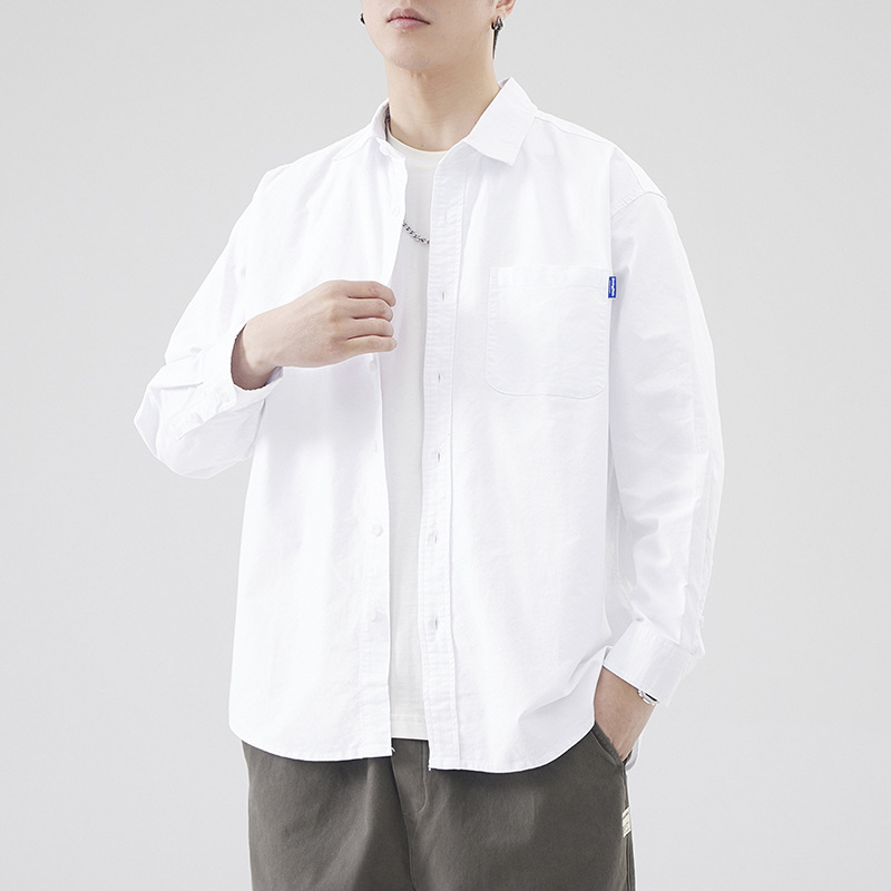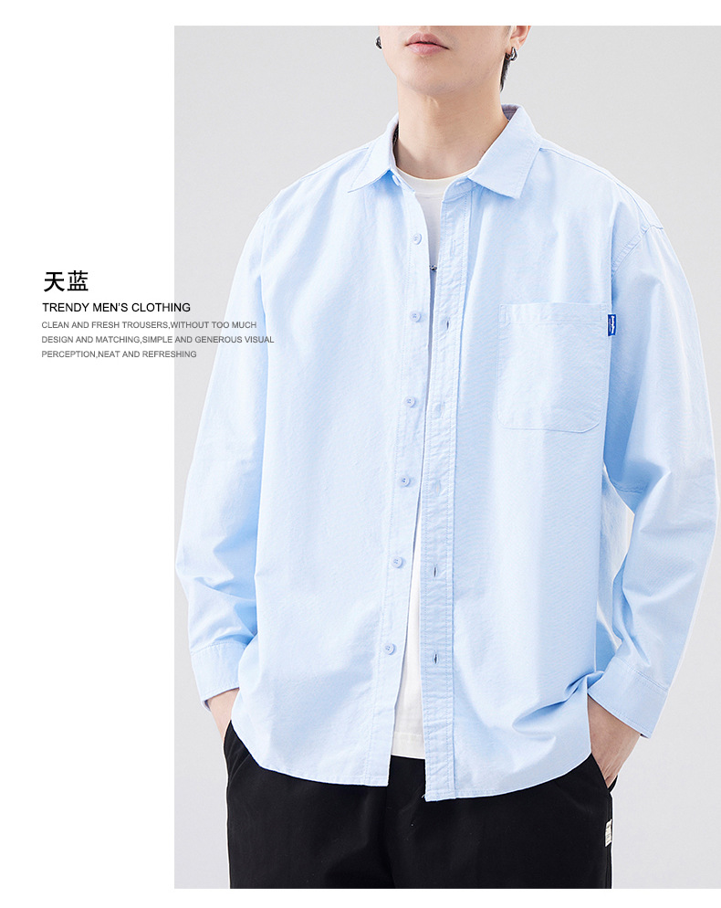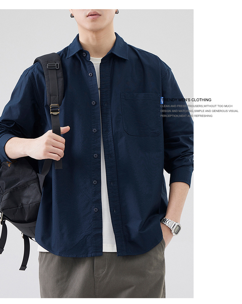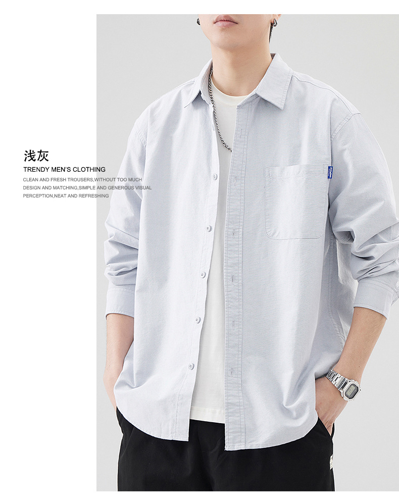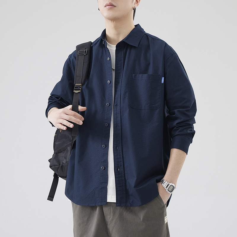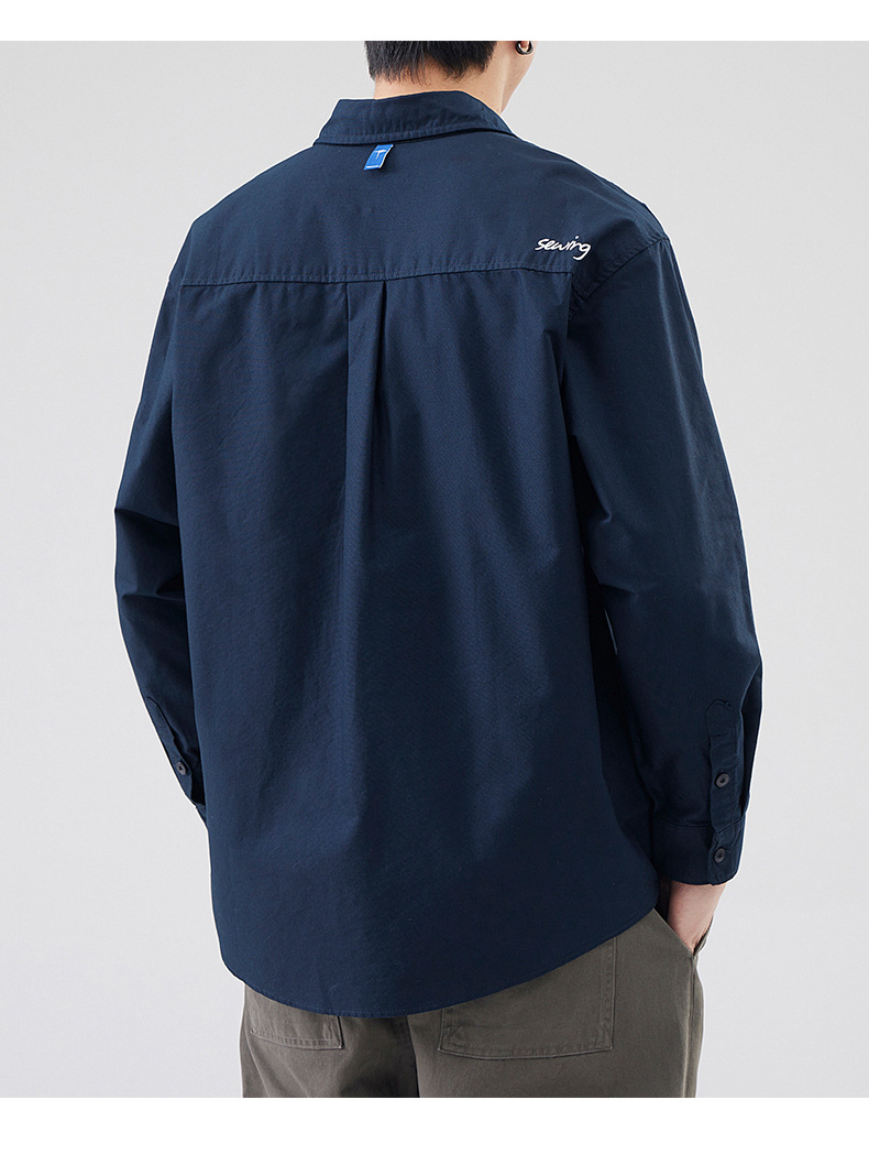 단색 옷깃 긴 소매 셔츠 남자의 가을 새로운 간단한 순수한 면 캐주얼 느슨한 일본 자수 셔츠스토어 가기