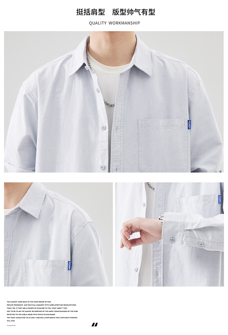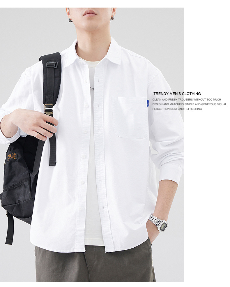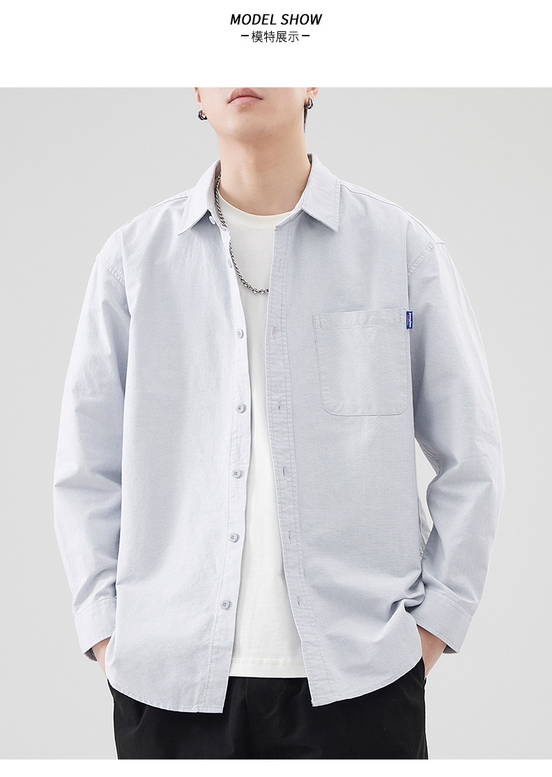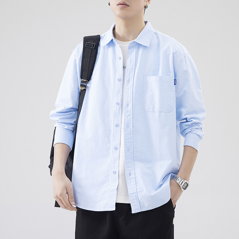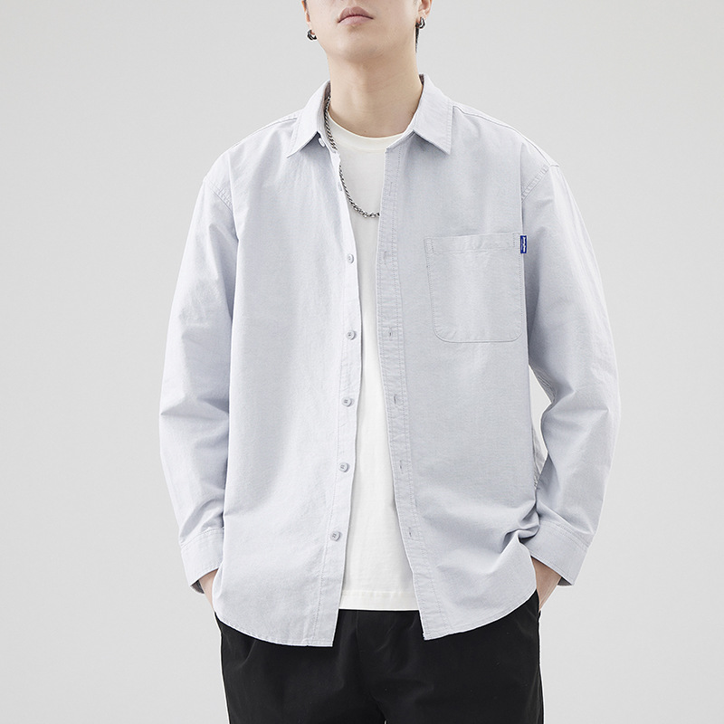 단색 옷깃 긴 소매 셔츠 남자의 가을 새로운 간단한 순수한 면 캐주얼 느슨한 일본 자수 셔츠스토어 가기