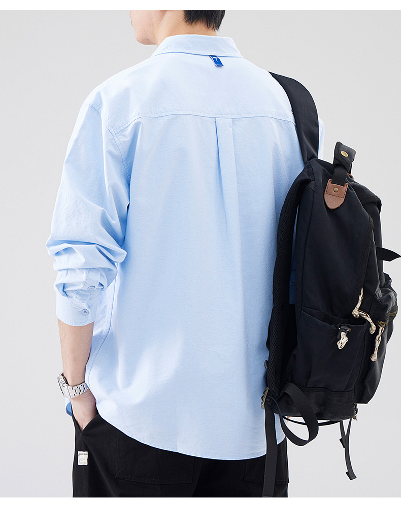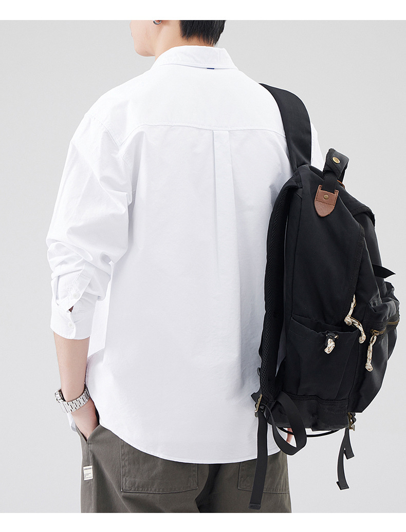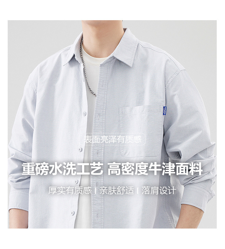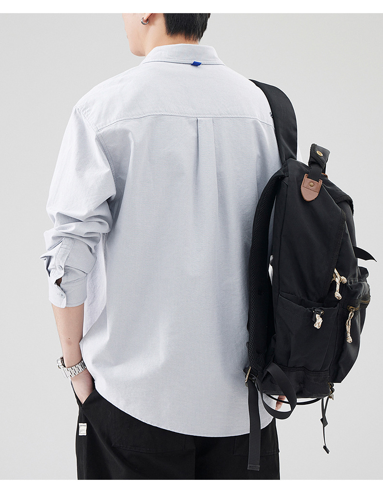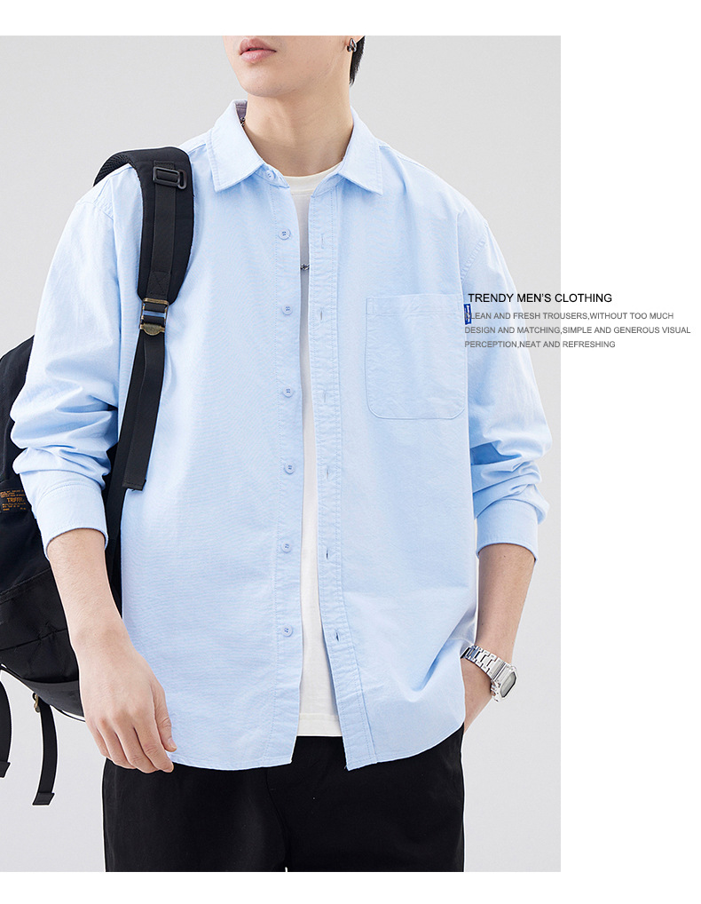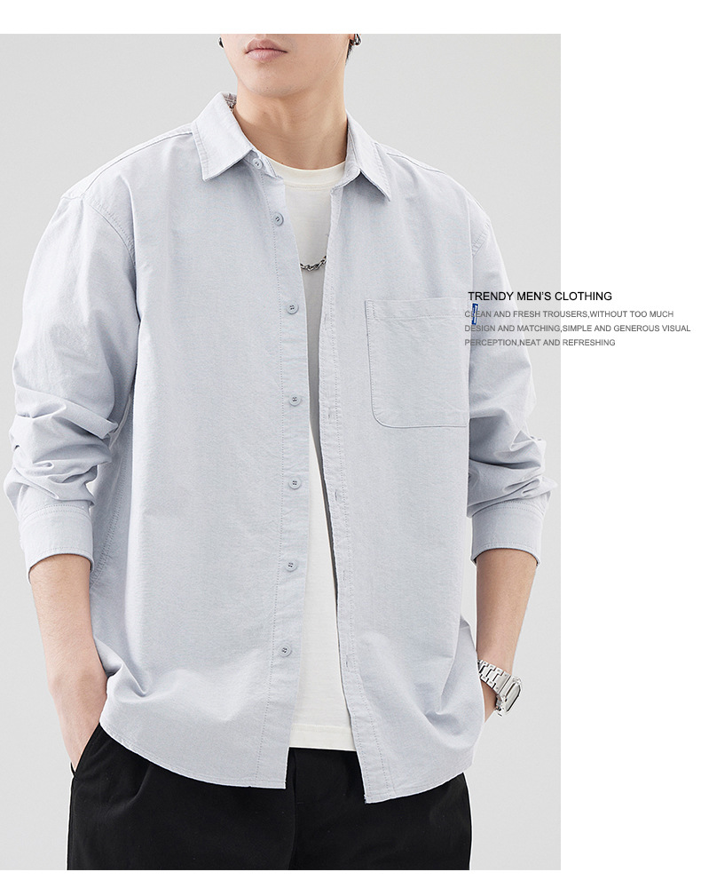 단색 옷깃 긴 소매 셔츠 남자의 가을 새로운 간단한 순수한 면 캐주얼 느슨한 일본 자수 셔츠스토어 가기