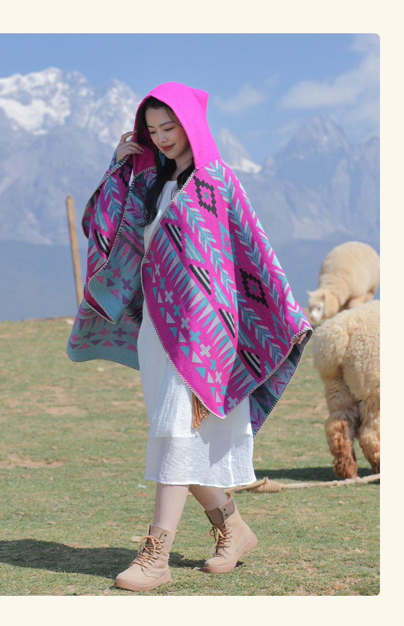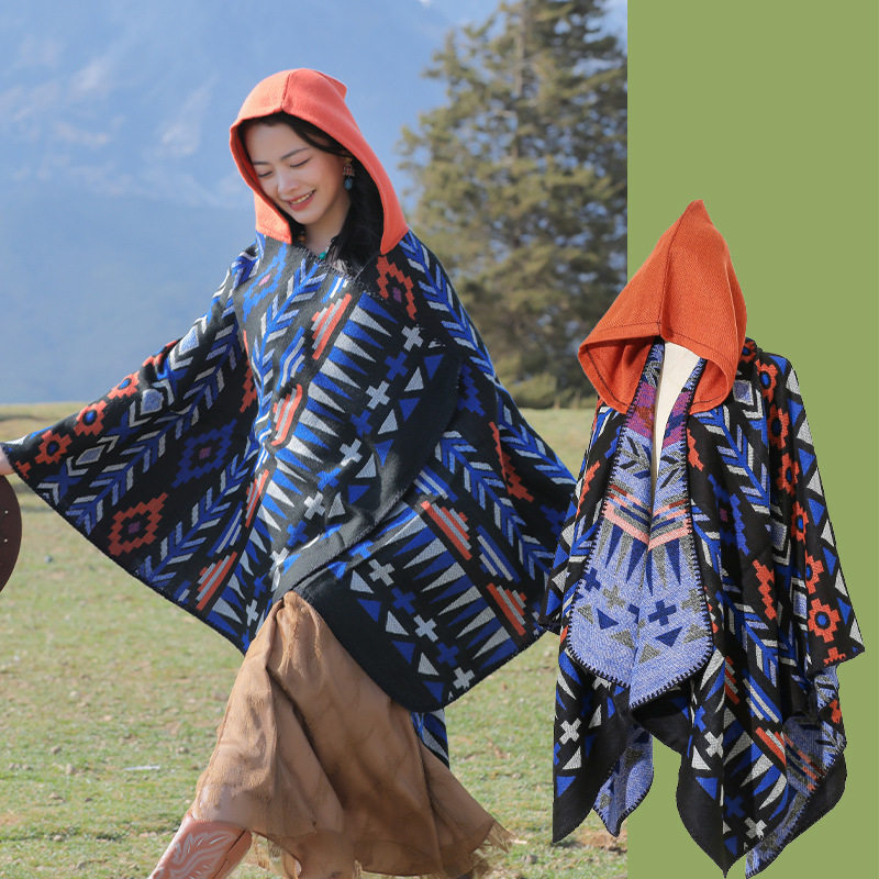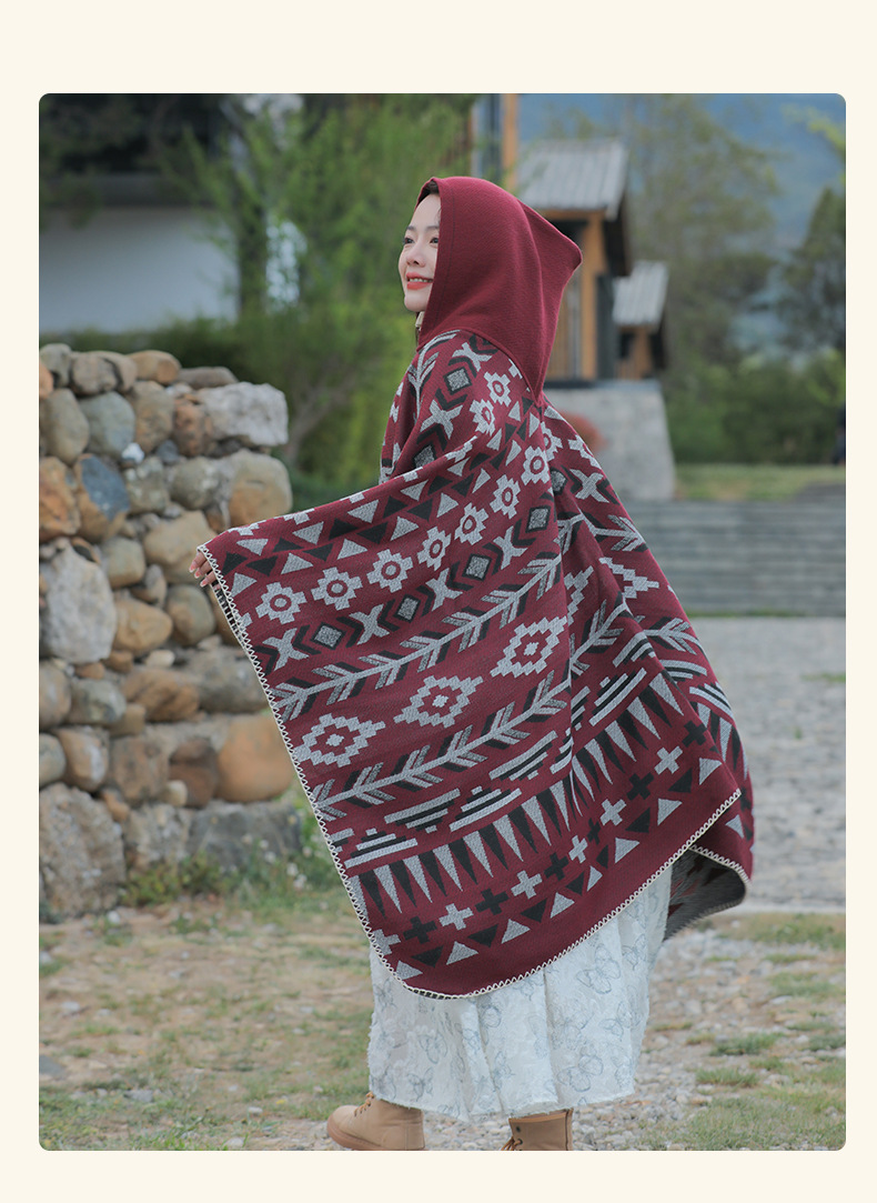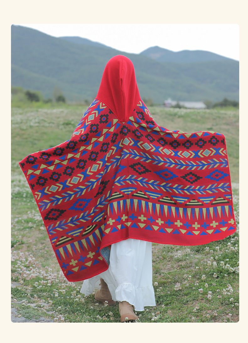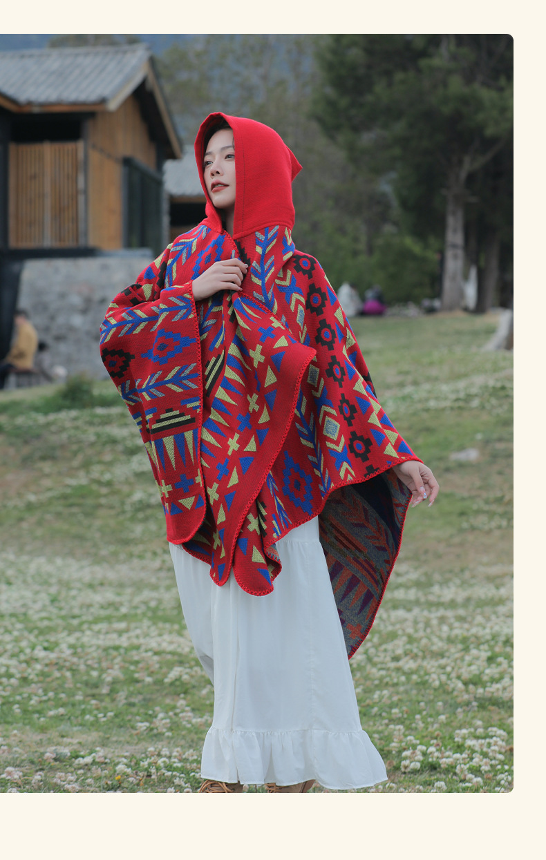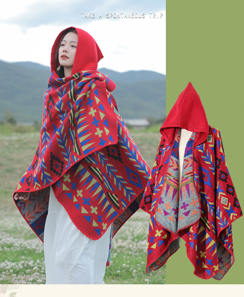 민족 스타일 망토 망토 망토 후드 레드 따뜻한 분할 칭하이 차카 솔트 레이크 프레리 여행복