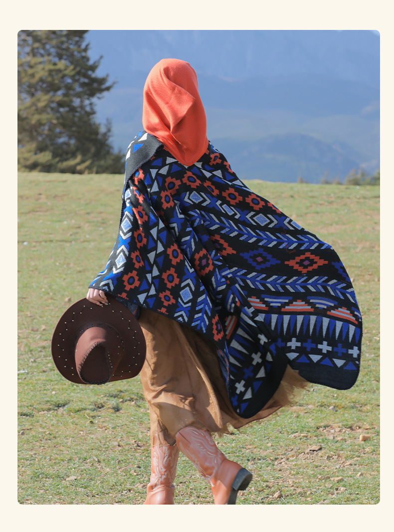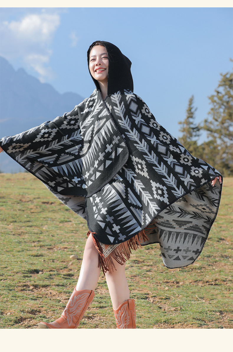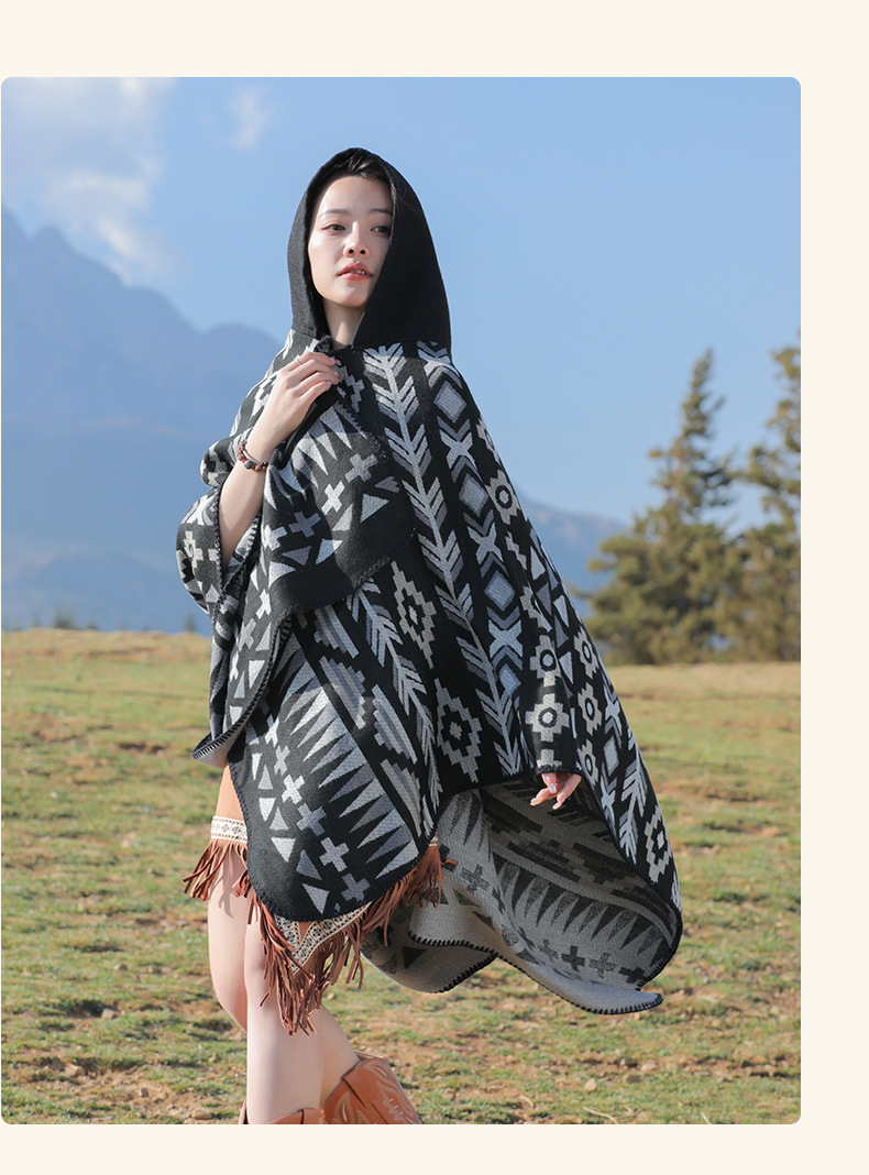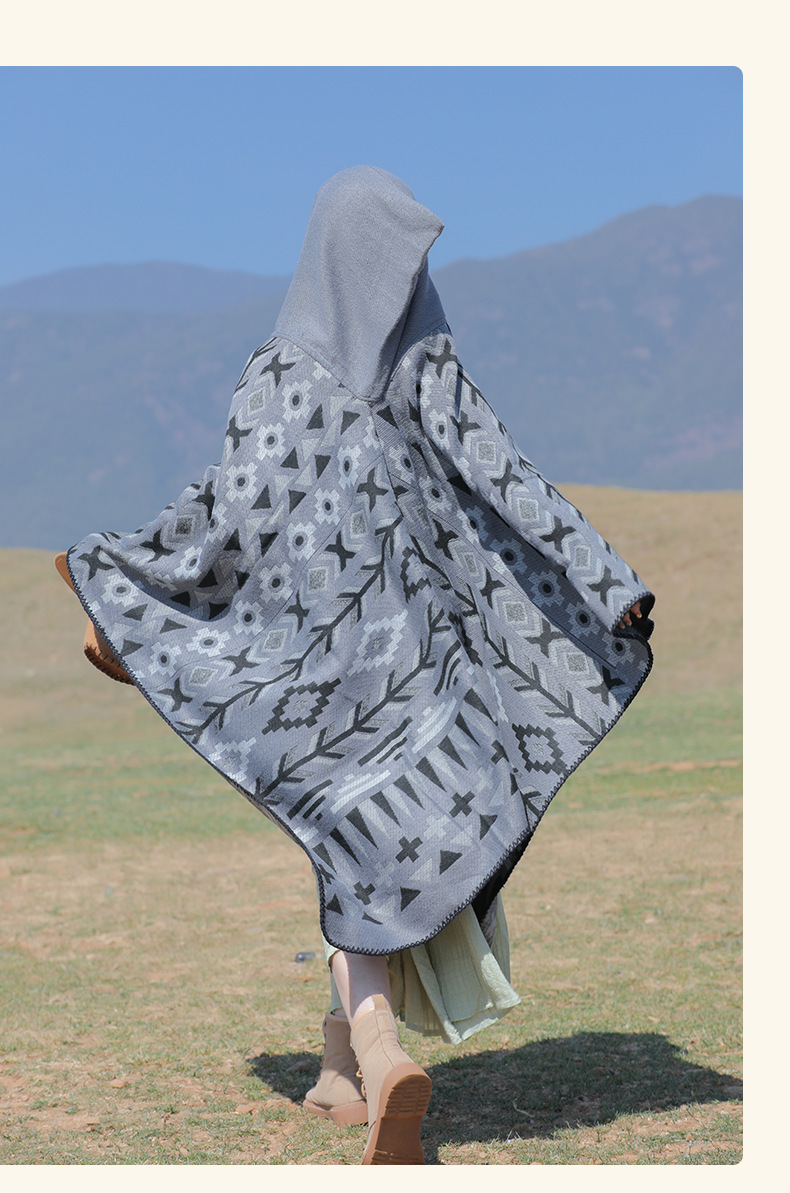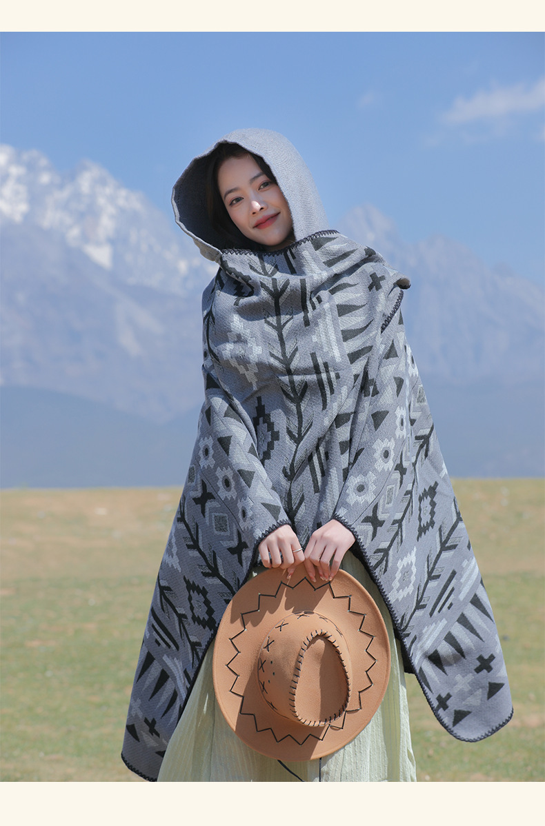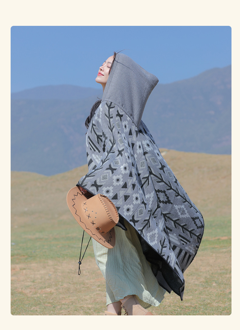 민족 스타일 망토 망토 망토 후드 레드 따뜻한 분할 칭하이 차카 솔트 레이크 프레리 여행복