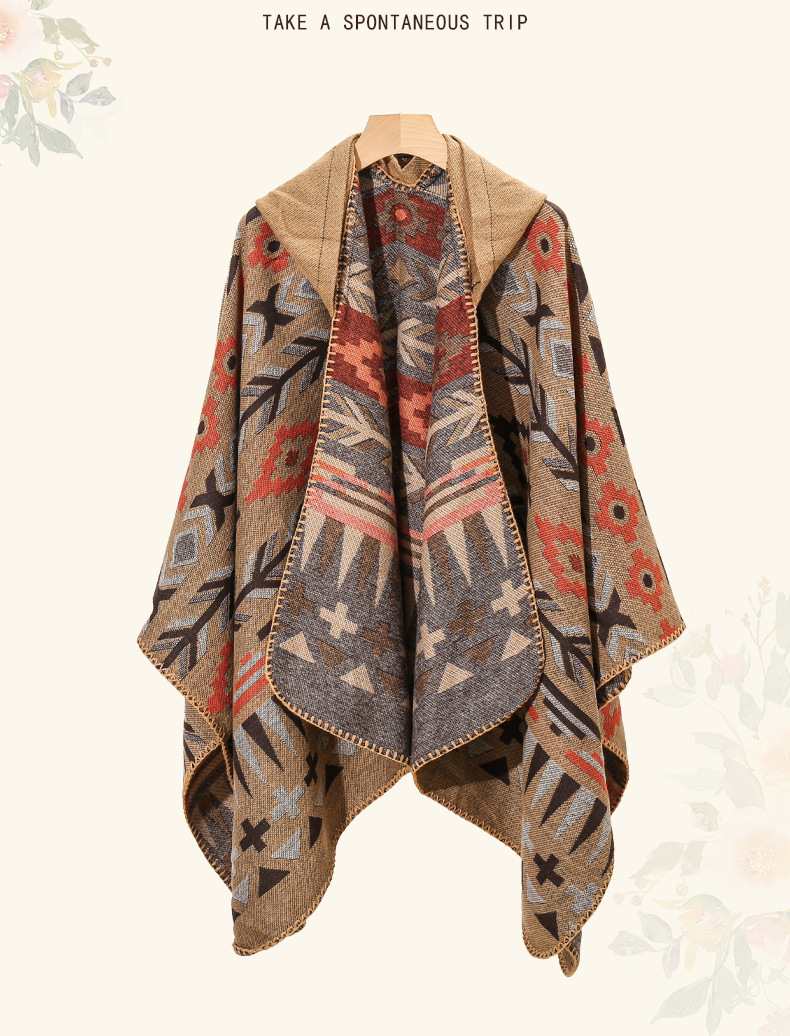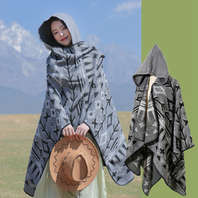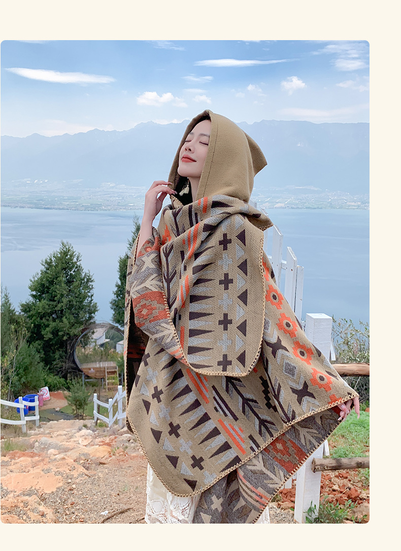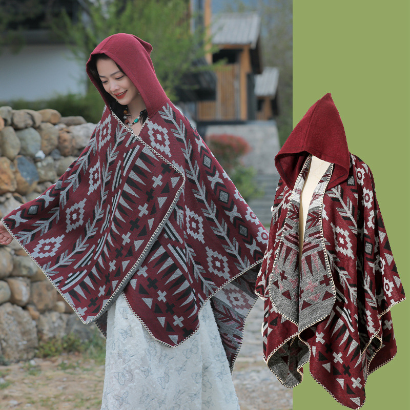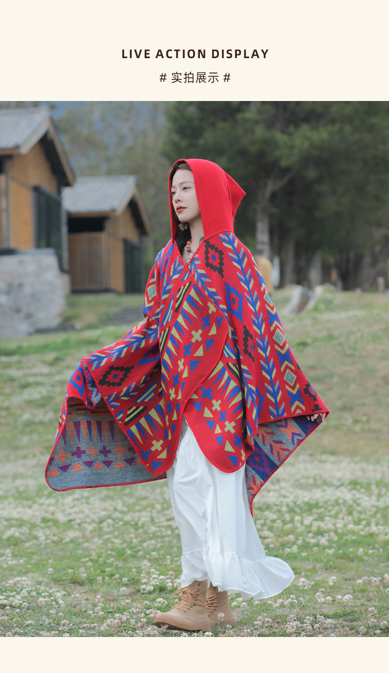 민족 스타일 망토 망토 망토 후드 레드 따뜻한 분할 칭하이 차카 솔트 레이크 프레리 여행복스토어 가기