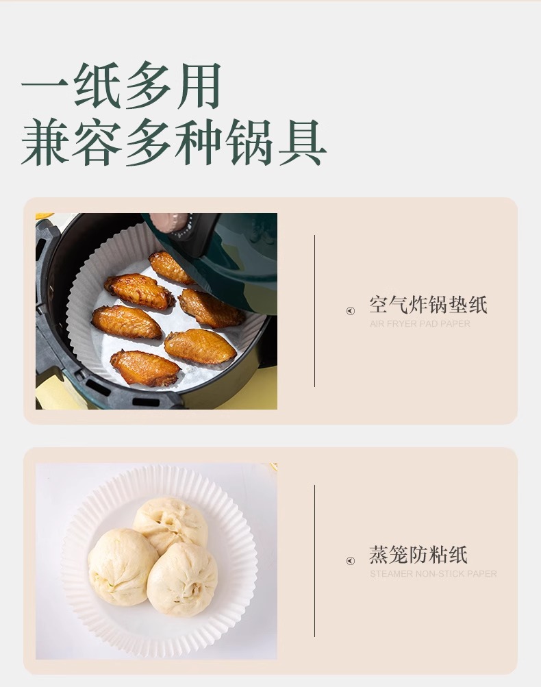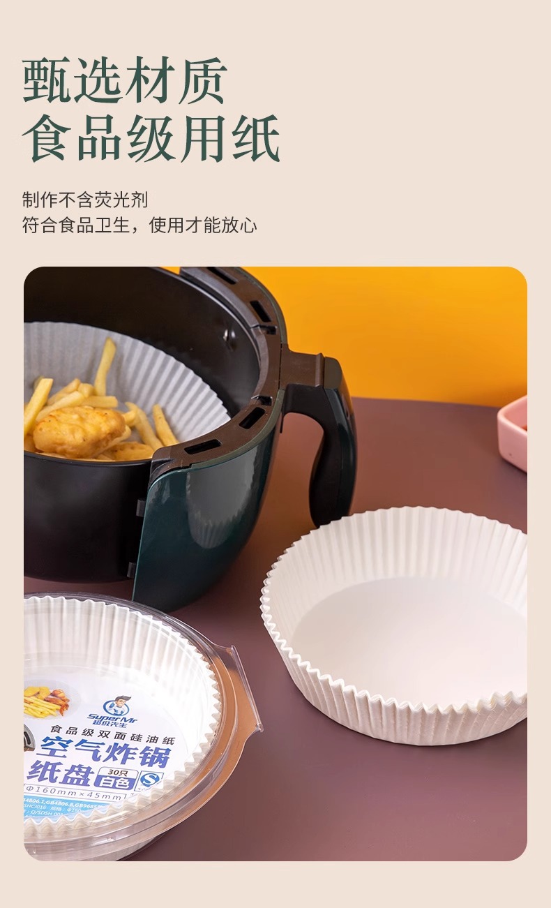 에어 프라이어 특수 종이 베이킹 팬 오일 흡수 종이 패드 종이 가정용 식품 실리콘 오일 종이 주석 종이 그릇 베이킹 냄비 전기 튀김